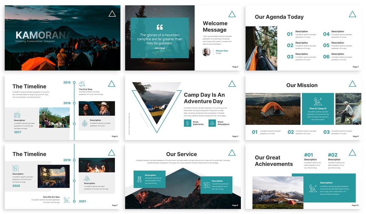 这是一个动态和现代的 Powerpoint 模板,在这里我们使用冒险旅行作为预览/主题。但是,您可以出于其他目的使用任何您想要的内容对其进行编辑。例如,这适用于公司简介、时尚、营销计划等,所有元素从形状到颜色都是可编辑的。您不需要其他软件来编辑它,只需使用 Powerpoint。
