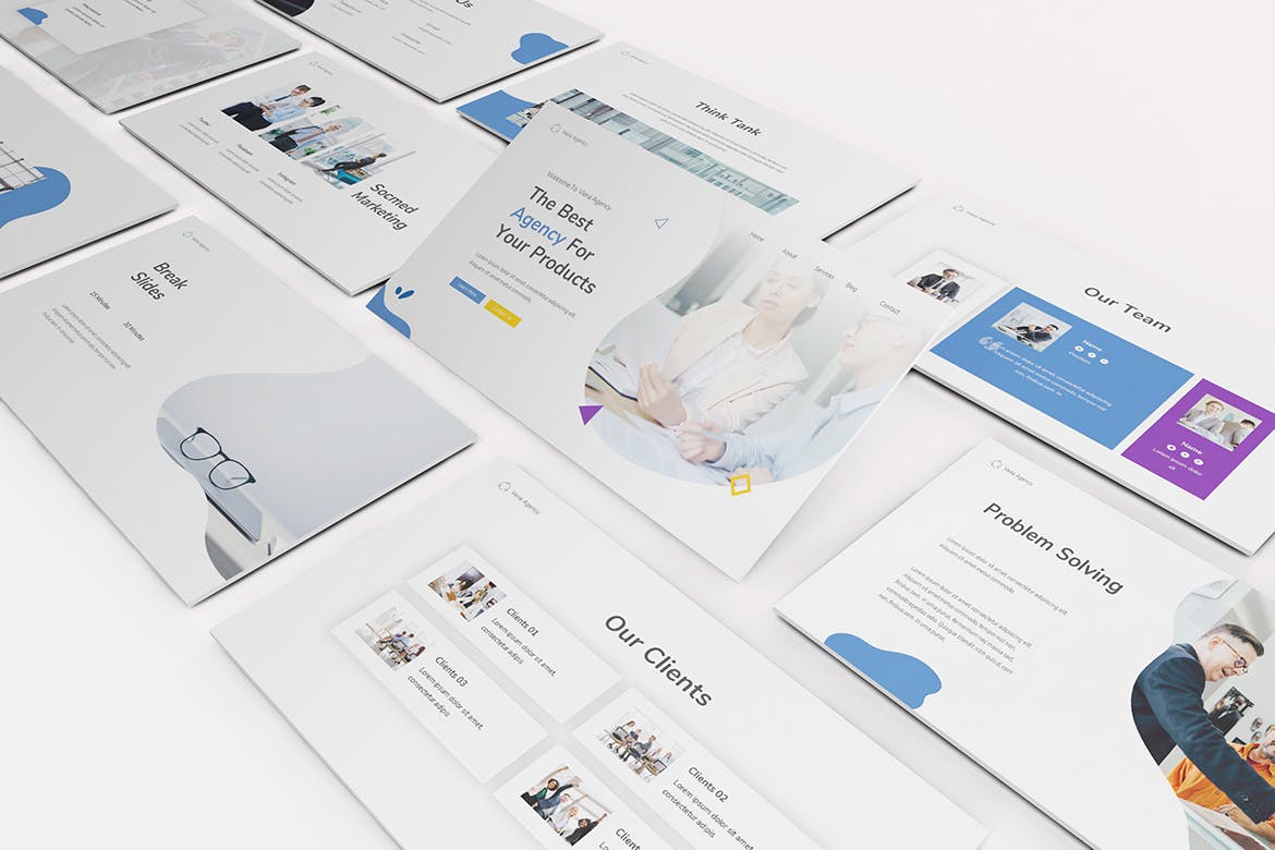 营销公司Powerpoint模板,用于营销和推广建议业务模板。平面设计让你的演讲脱颖而出,简单,干净,简约的设计理念。为高质量的品牌展示资产。
