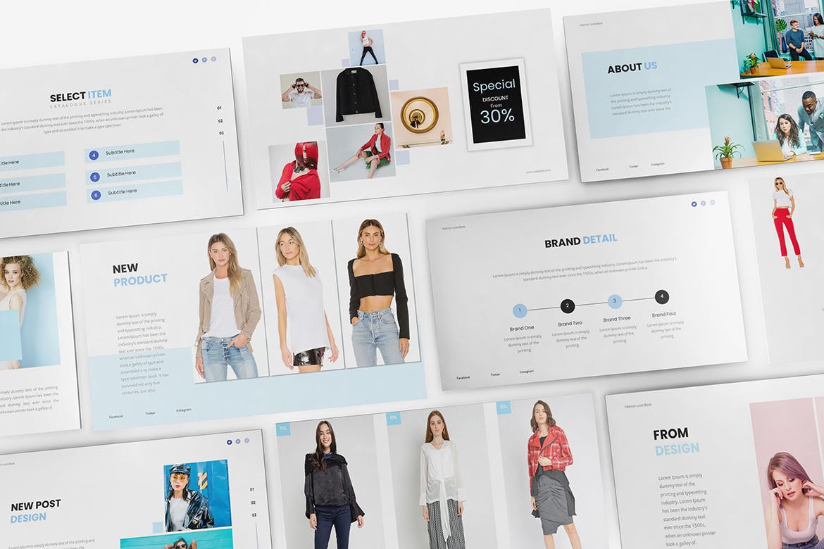 这次老不湿分享的是,时尚高端流行风格的lookbook Google Slides谷歌幻灯片演示模板(pptx),用于时装行业演示模板。平面和简约的设计使您的演示文稿脱颖而出,具有简单,干净和简约的设计理念。用于高质量的品牌展示资产。