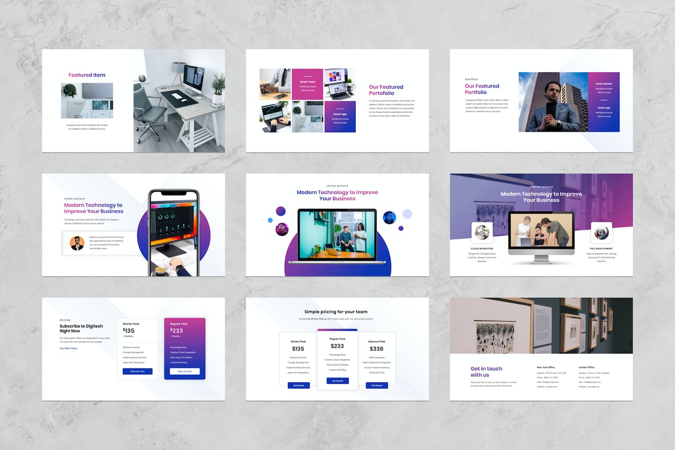 此演示模板包含现代,典雅,创意,专业和独特的布局。