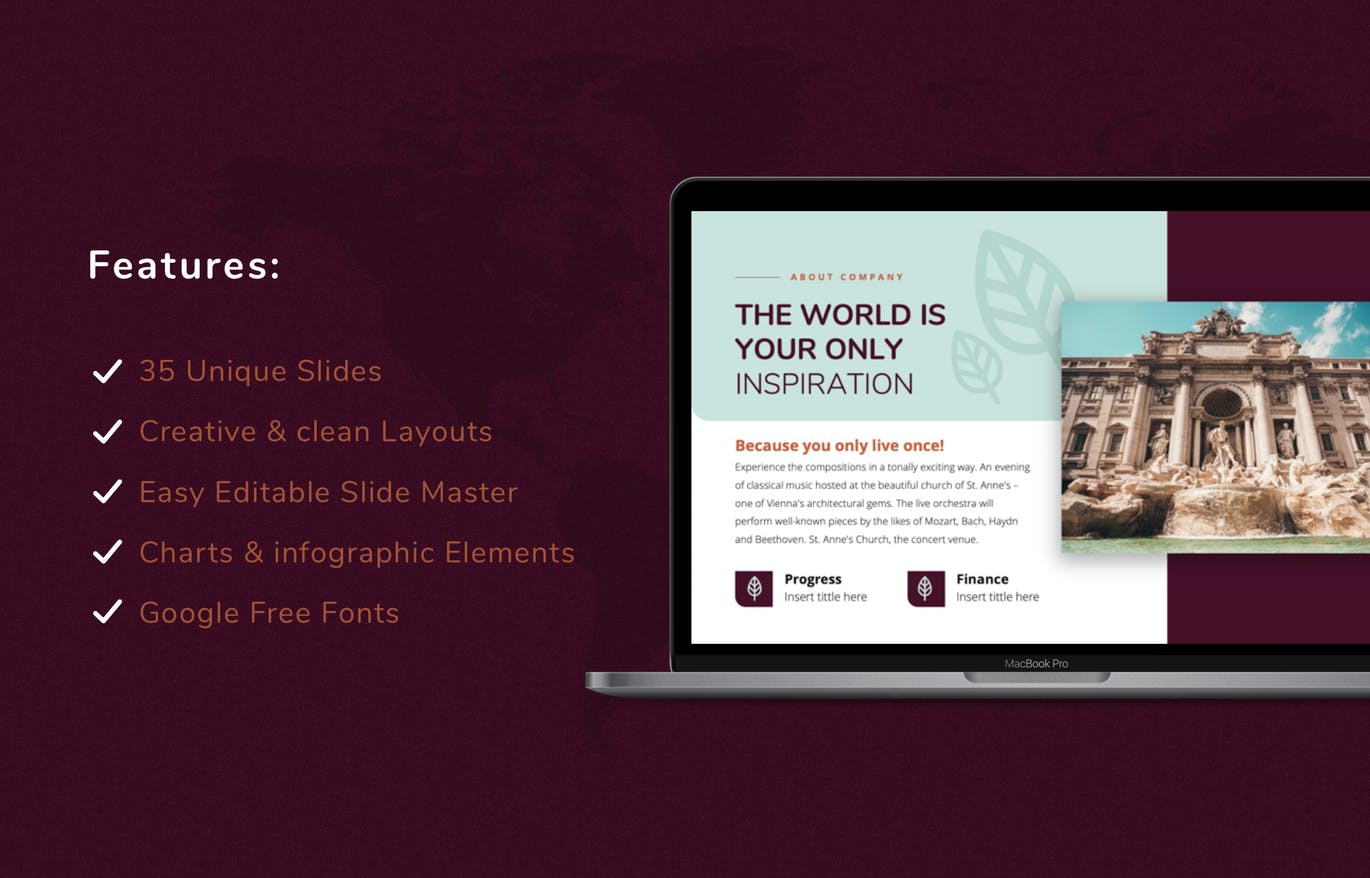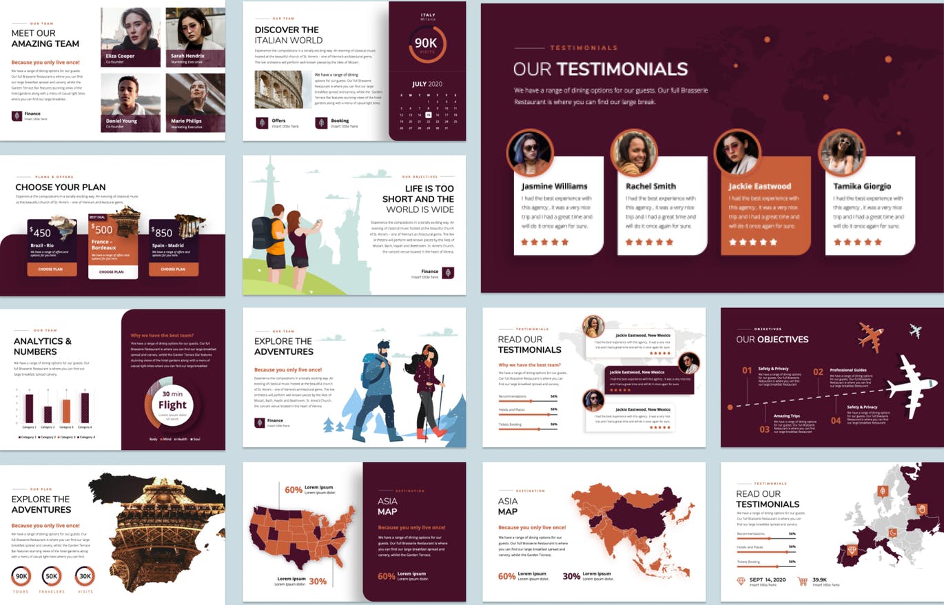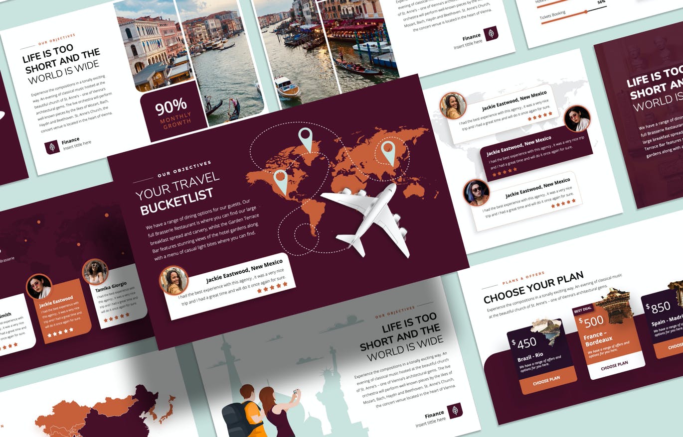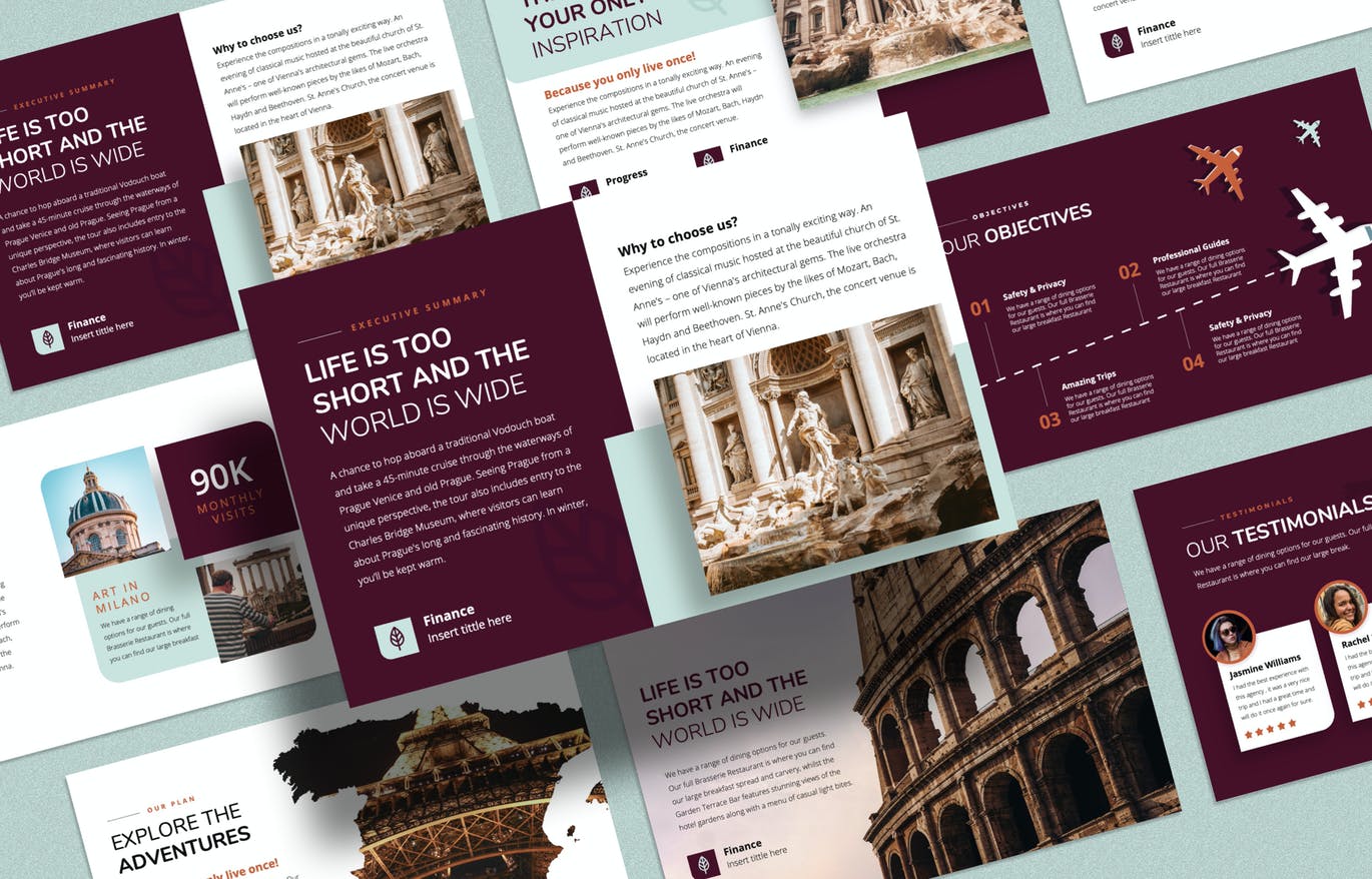 这次分享的是,创意旅行排版的PPT模板(PPTX),看看这个演示模板,它以漂亮的布局为主题,可用于您的企业,无论您是旅行社还是任何企业,它都将以干净,创意和独特的风格帮助您很好地形象化演示文稿。本演示文稿中的所有元素都是易于编辑的向量,并且使用Slide master,可以轻松地将图像放入占位符。立即获取!