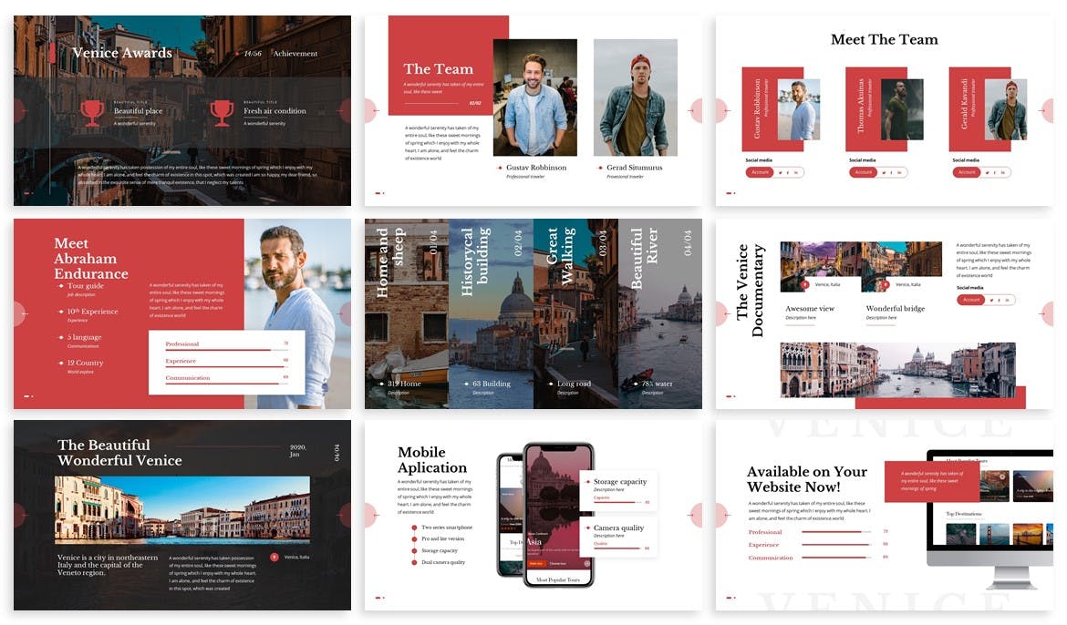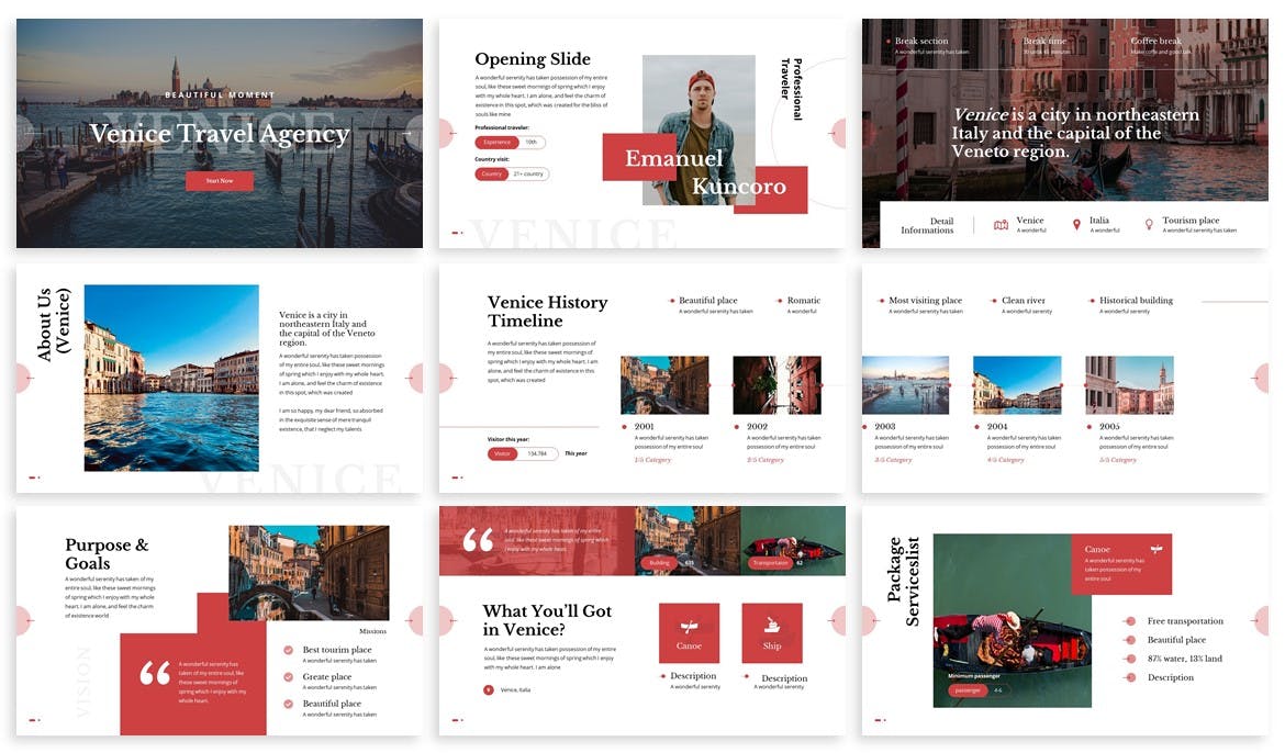 这次老不湿分享的是,时尚高端简约威尼斯旅游度假风格的多用途powerpoint幻灯片演示模板(pptx),这是一个现代而干净的Powerpoint模板,使用威尼斯旅行社作为预览/主题。您可以根据需要和对其进行编辑。例如,这适用于“属性”,“金融”,“时尚”等。所有元素都可以从形状到颜色进行编辑。您不需要其他软件来编辑它,只需使用Powerpoint。