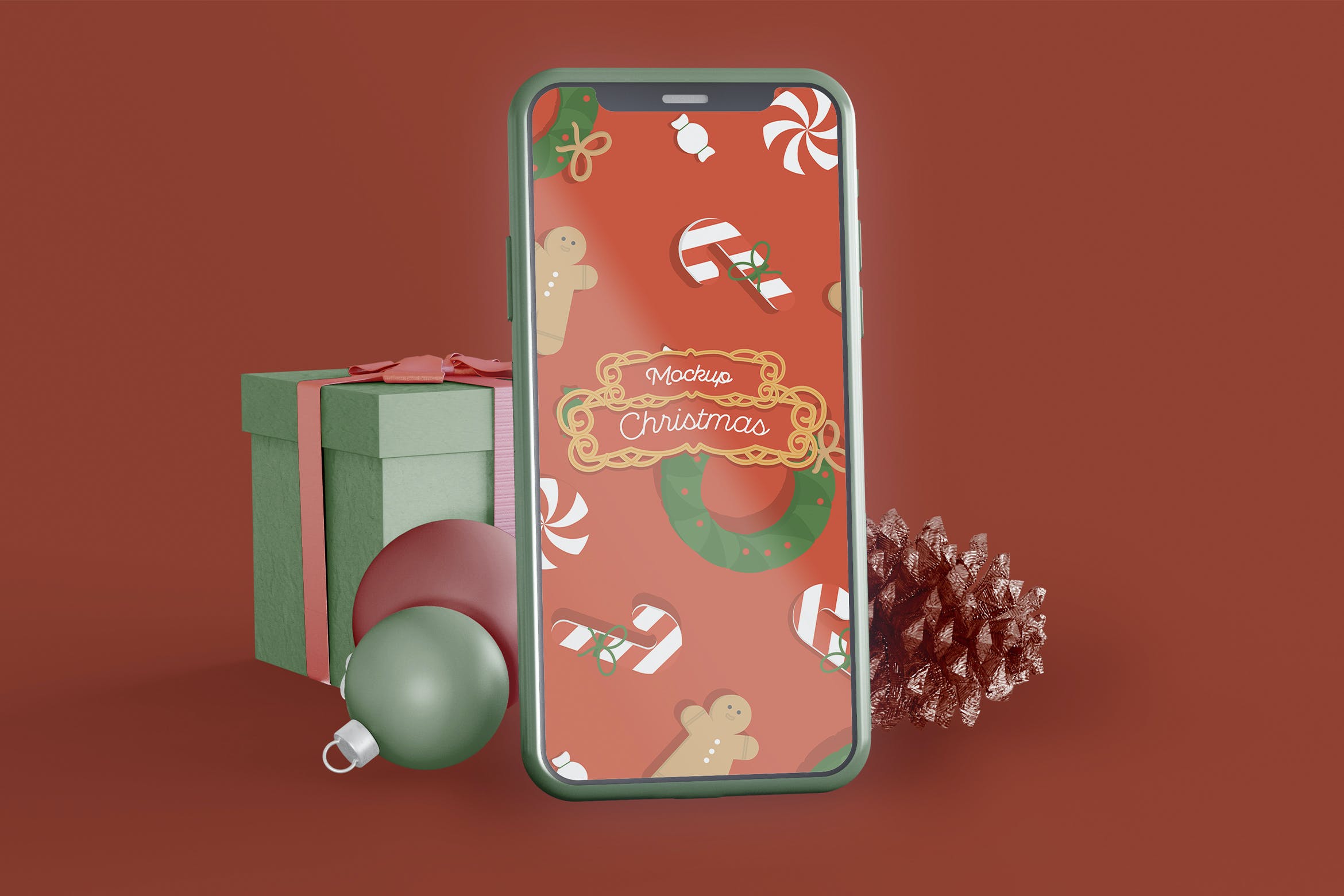 圣诞装饰元素手机屏幕样机,有一个智能对象,可帮助您调整设计。 只需将其拖放即可。 使用起来非常简单。 通过使用纯色层易于重新着色。该圣诞样机的高分辨率使其可用于商业目的。 享受高品质!示例样本设计不包含在下载文件中。