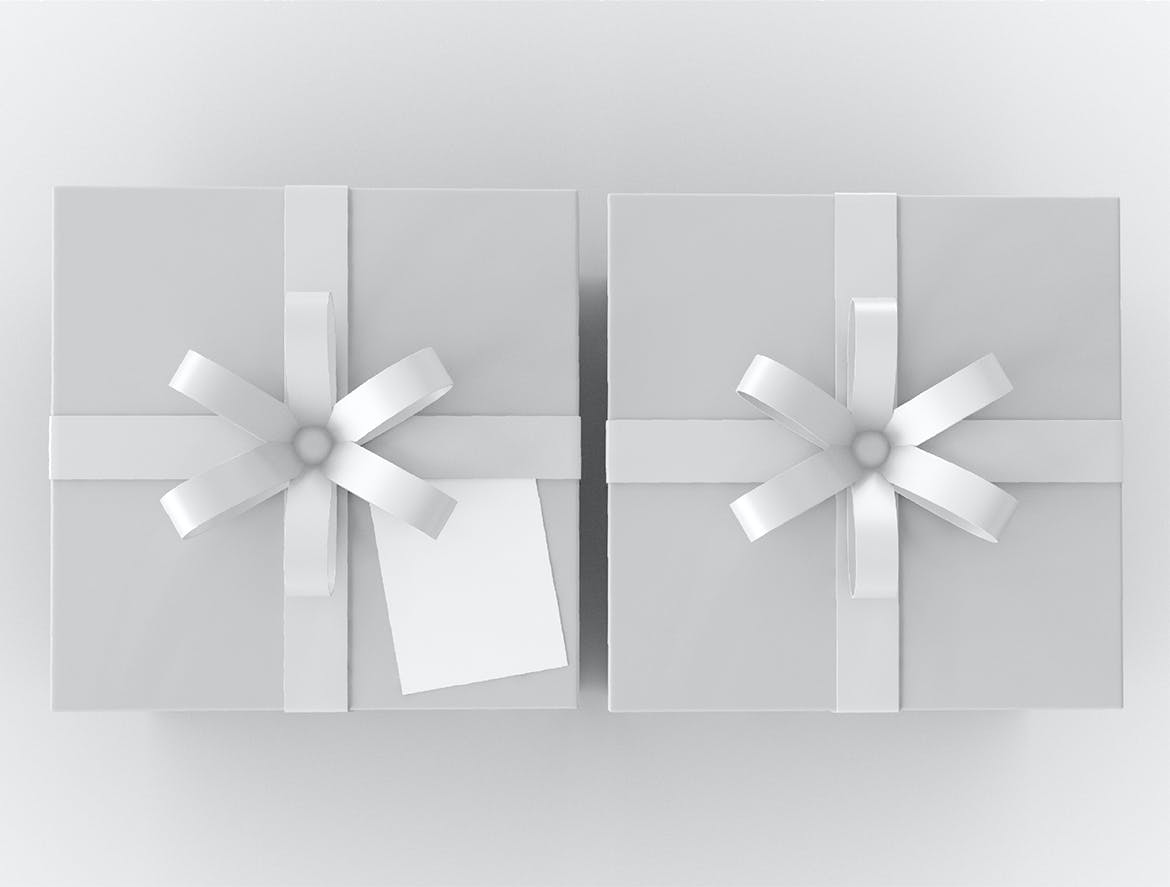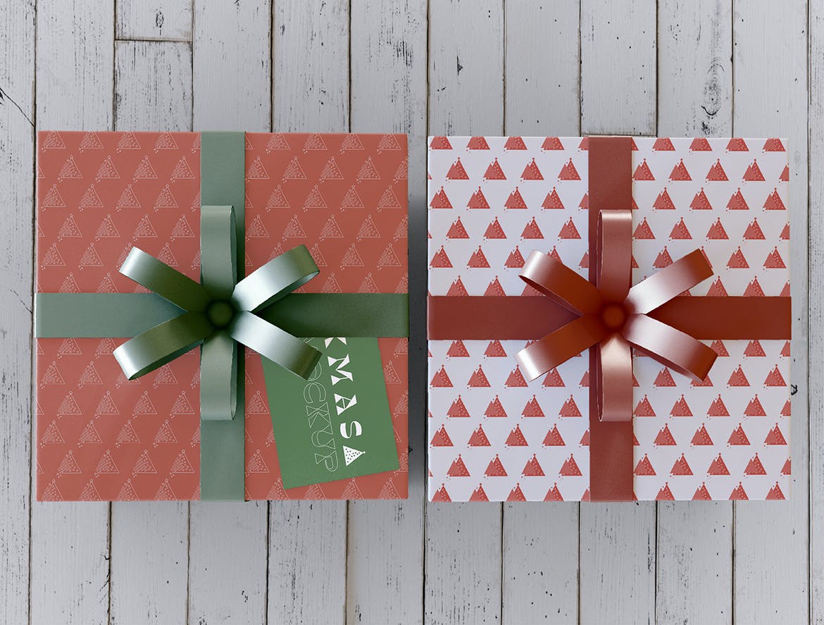 圣诞礼品盒包装设计顶视图样机,有一个智能对象,可帮助您调整设计。 只需将其拖放即可。 使用起来非常简单。 通过使用纯色层易于重新着色。该礼品盒样机的高分辨率使其可用于商业目的。 享受高品质!示例样本设计不包含在下载文件中。