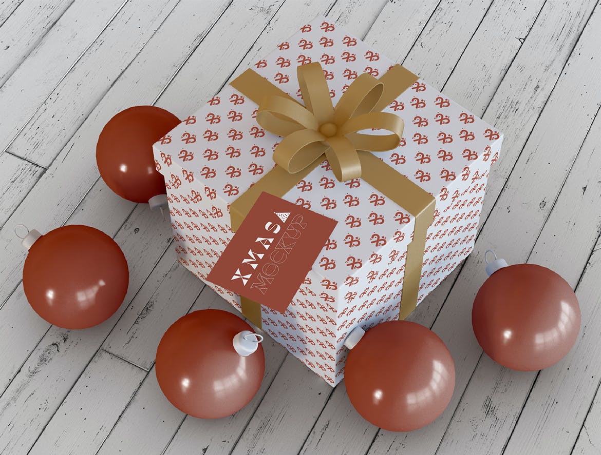 圣诞场景礼品包装&贺卡设计样机,有一个智能对象,可帮助您调整设计。 只需将其拖放即可。 使用起来非常简单。 通过使用纯色层易于重新着色。该礼品包装样机的高分辨率使其可用于商业目的。 享受高品质!示例样本设计不包含在下载文件中。