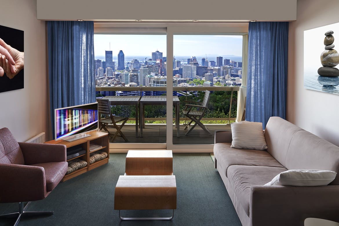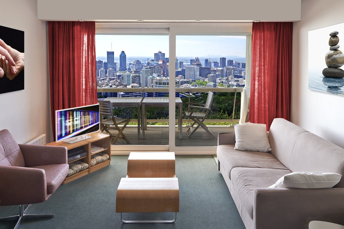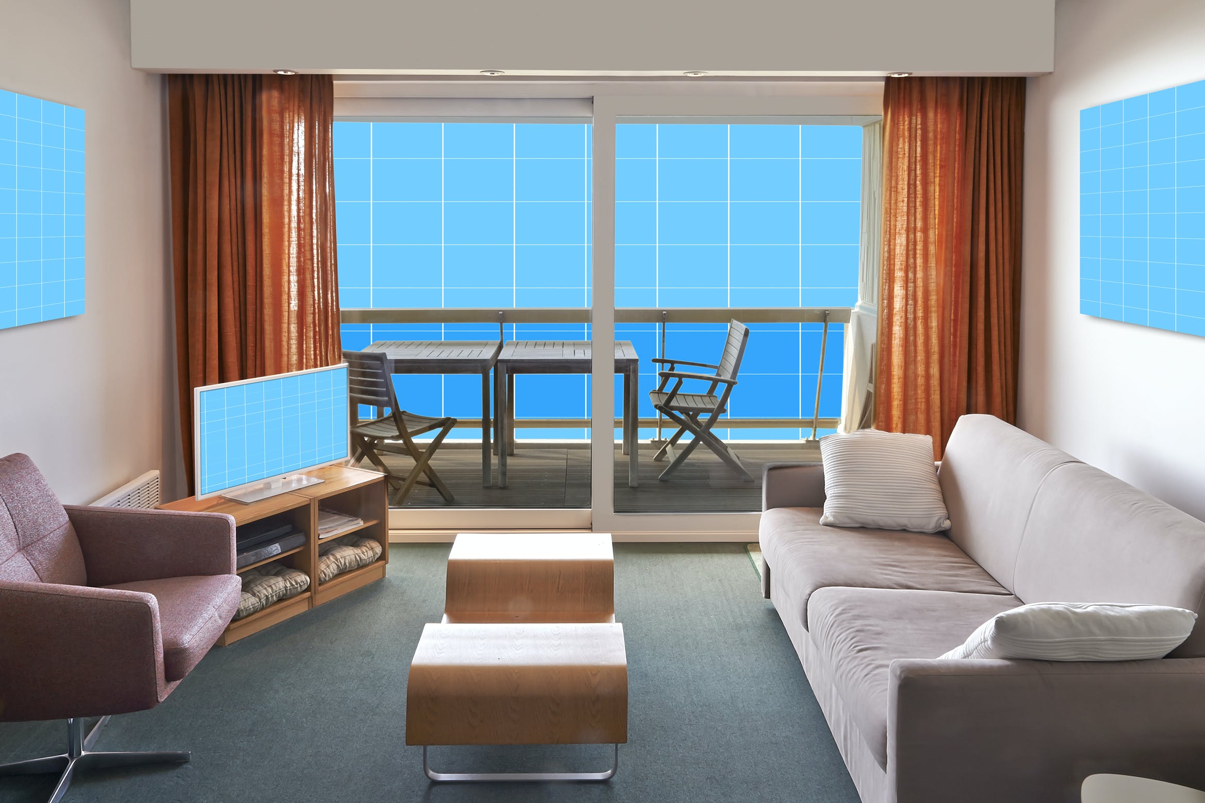 复古风格客房房间效果图展示样机,复古时尚的家居内饰,透过窗户可以看到风景。通过此房间场景图样机,可以节省时间并让您的品牌看起来引人注目。 使用智能对象轻松放置您的设计,双击“智能层”,复制并粘贴图稿,保存即可完成!