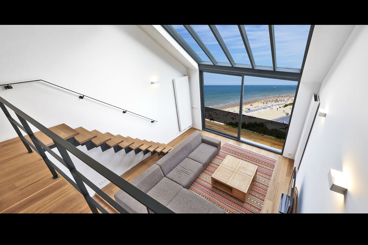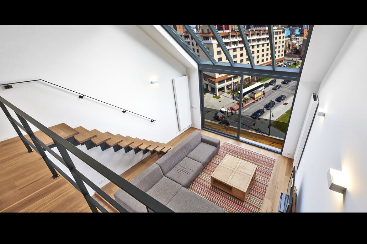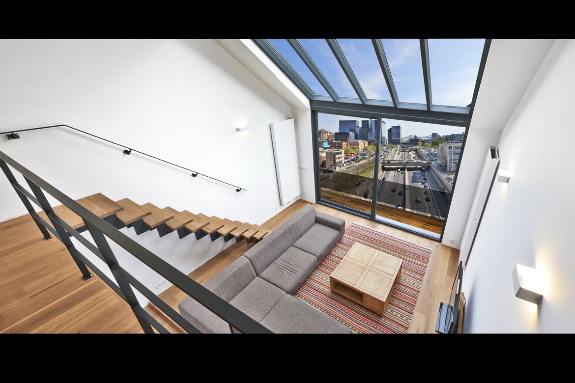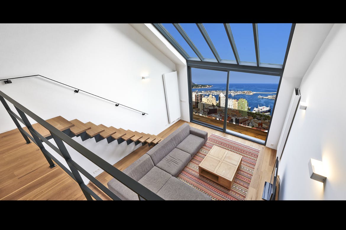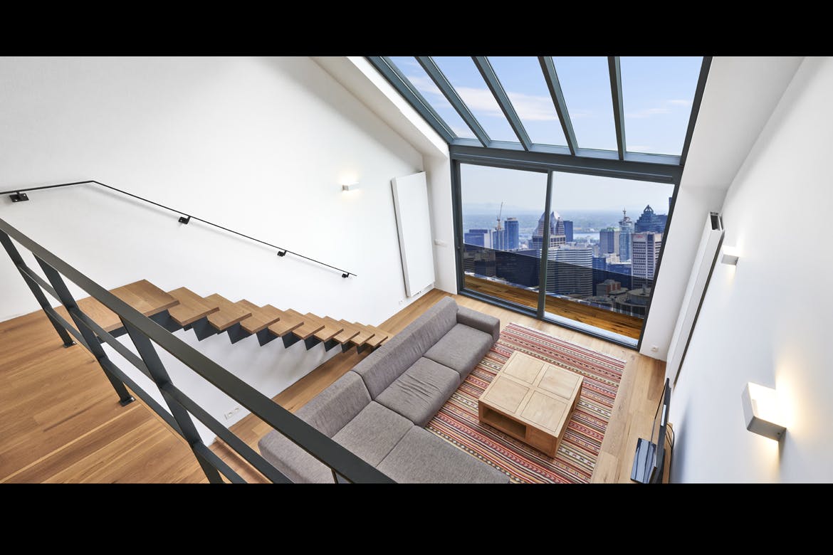 现代阁楼房,设有大窗户,可欣赏窗户景观。 易于定制。通过此阁楼窗户场景设计效果图样机,可以节省时间并让您的品牌看起来引人注目。 使用智能对象轻松放置您的设计,双击“智能层”,复制并粘贴图稿,保存即可完成!