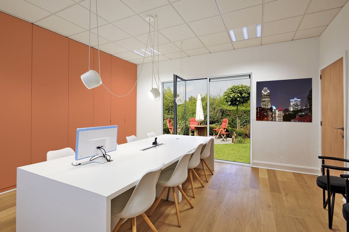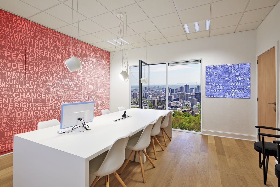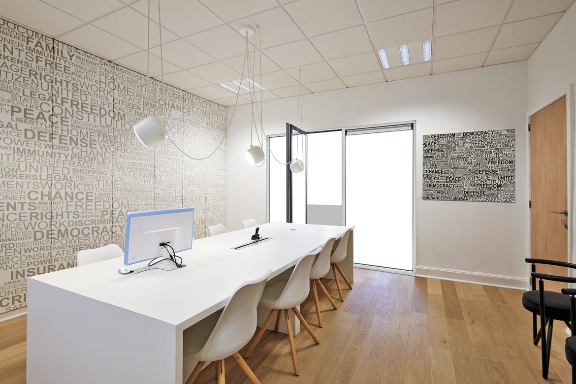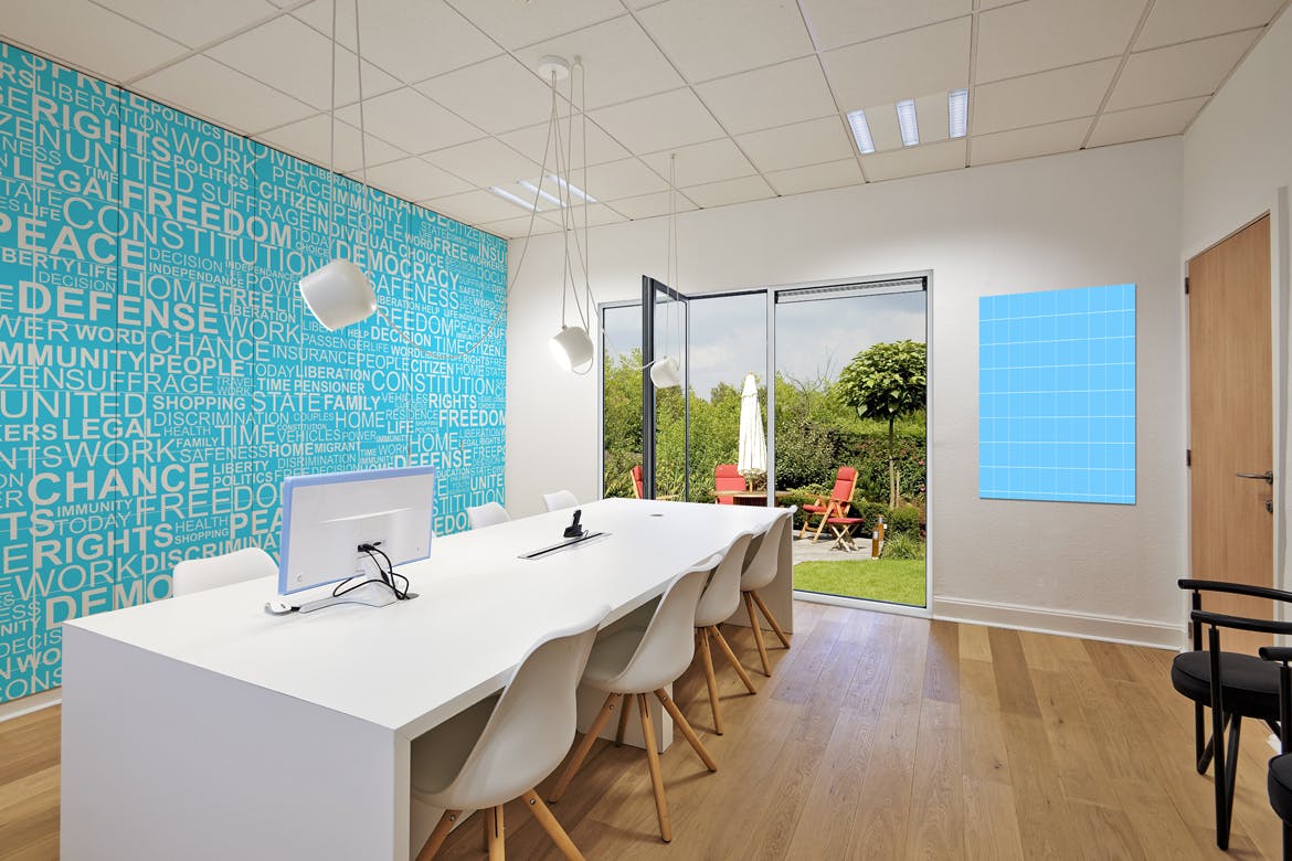 现代化的办公室,墙、窗户和框架,通过此企业办公室场景样机,可以节省时间并让您的品牌看起来引人注目。 使用智能对象轻松放置您的设计,双击“智能层”,复制并粘贴图稿,保存即可完成!