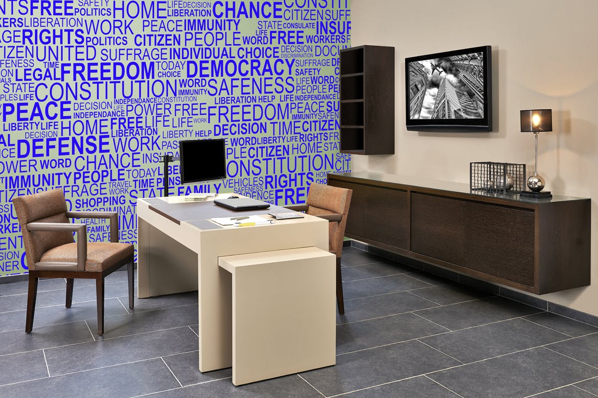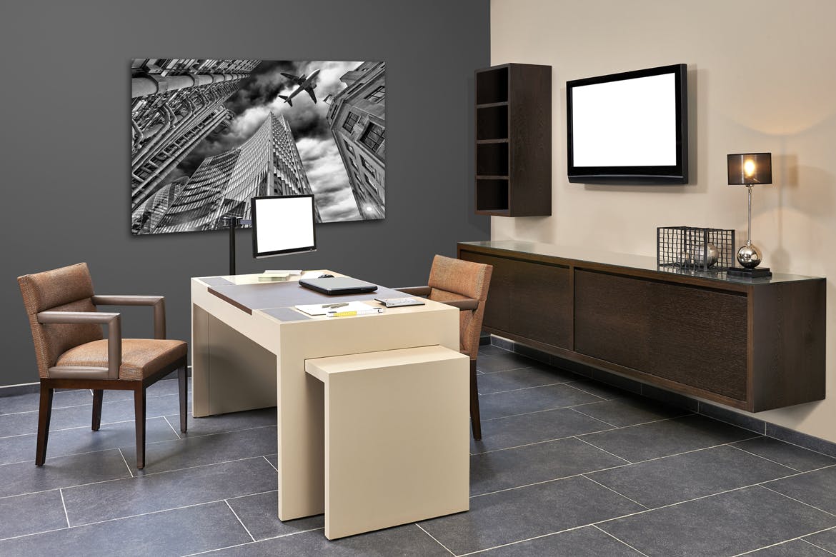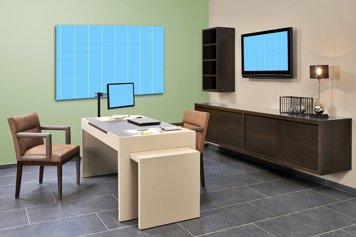 通过此展厅办公室场景样机,可以节省时间并让您的品牌看起来引人注目。 使用智能对象轻松放置您的设计,双击“智能层”,复制并粘贴图稿,保存即可完成!