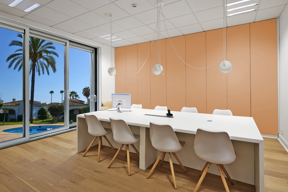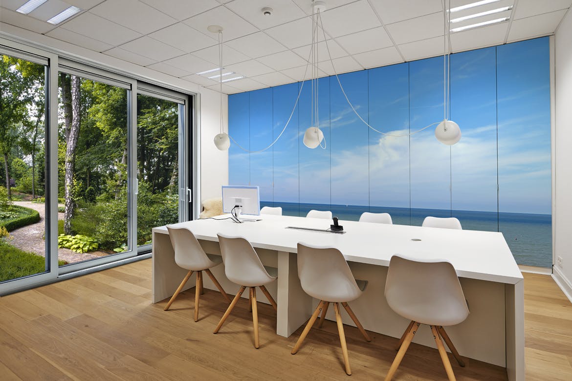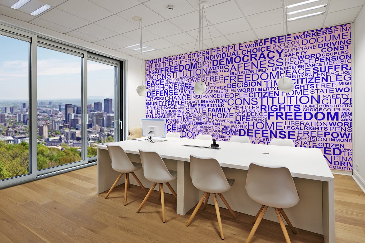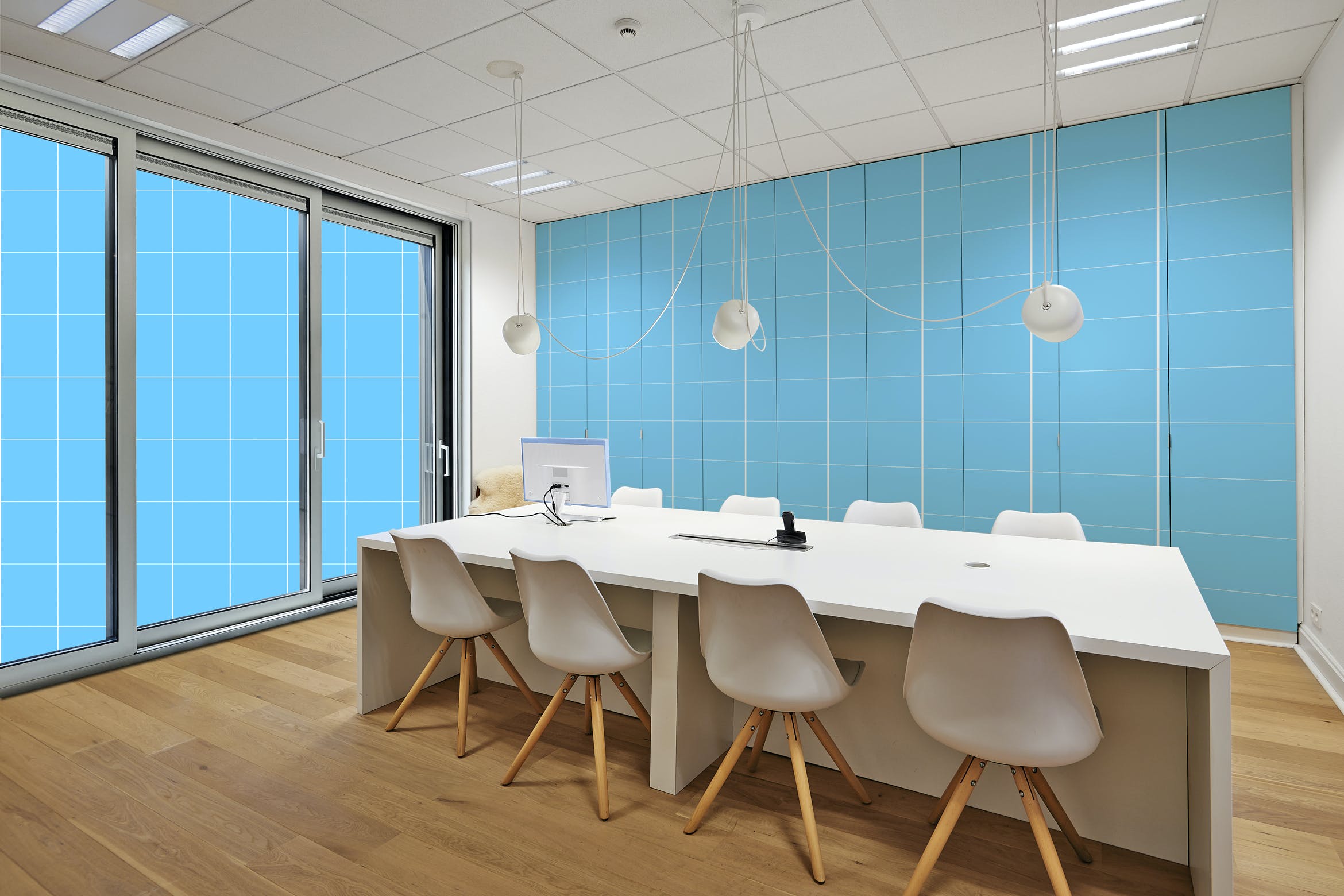 带窗户和大型设计储物柜的现代办公室,通过此办公室装修设计场景图样机,可以节省时间并让您的品牌看起来引人注目。 使用智能对象轻松放置您的设计,双击“智能层”,复制并粘贴图稿,保存即可完成!