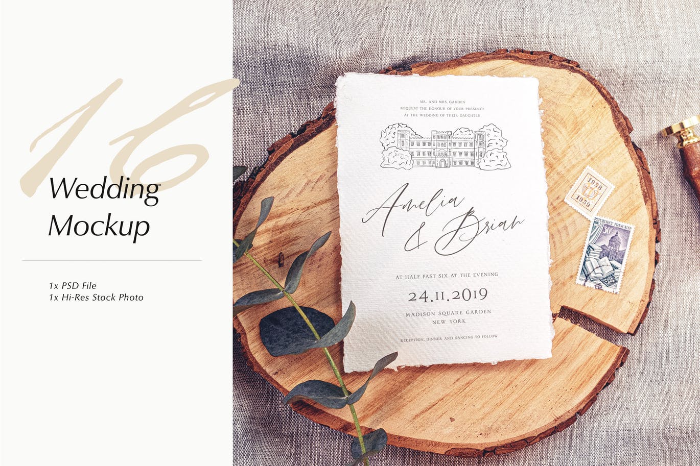 优雅风格婚礼照片&婚礼邀请函设计样机模板v16,具有智能对象功能,可快速编辑,帮助您轻松替换设计。非常适合展示你的邀请函设计。下载中包含PSD文件和高分辨率的JPG照片。