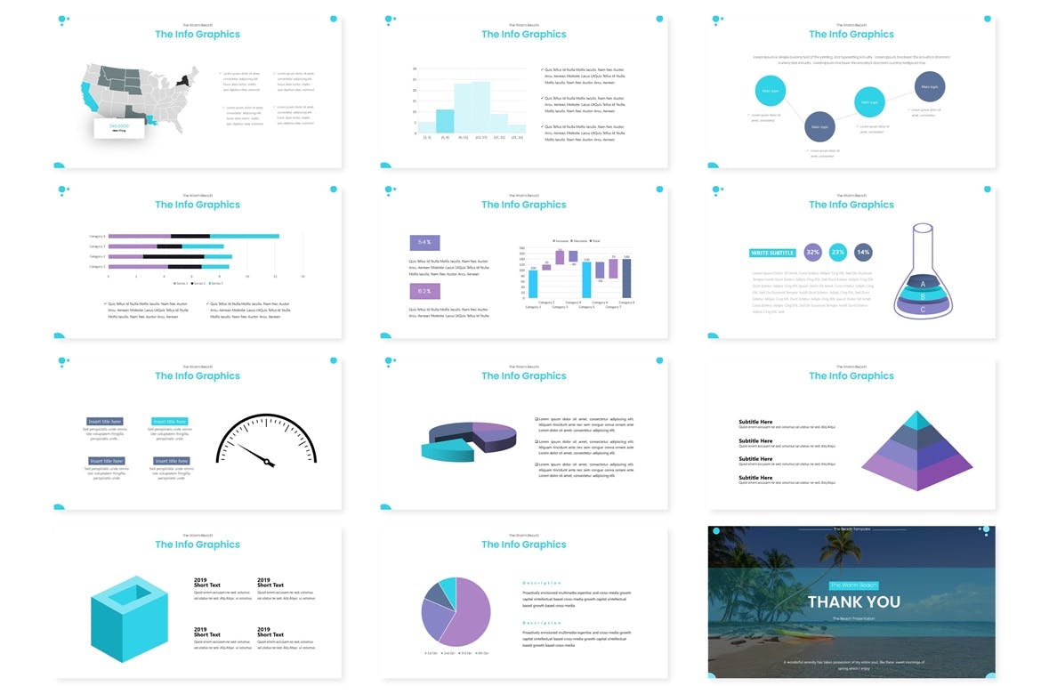 这次老不湿分享的是,时尚高端多用途的简约多功能powerpoint幻灯片演示模板(pptx),具有第5种预制的颜色变化立即获取, Deblue Beach-Powerpoint模板是满足商务或个人需求的多功能演示文稿的绝佳模板。该模板中的所有元素都是使用Powerpoint制作的,只能使用Powerpoint进行编辑,插入内容,将图像替换为占位符,更改颜色,以及所有演示文稿(包括动画幻灯片),并将幻灯片展示给业务合作伙伴。快乐滑块!