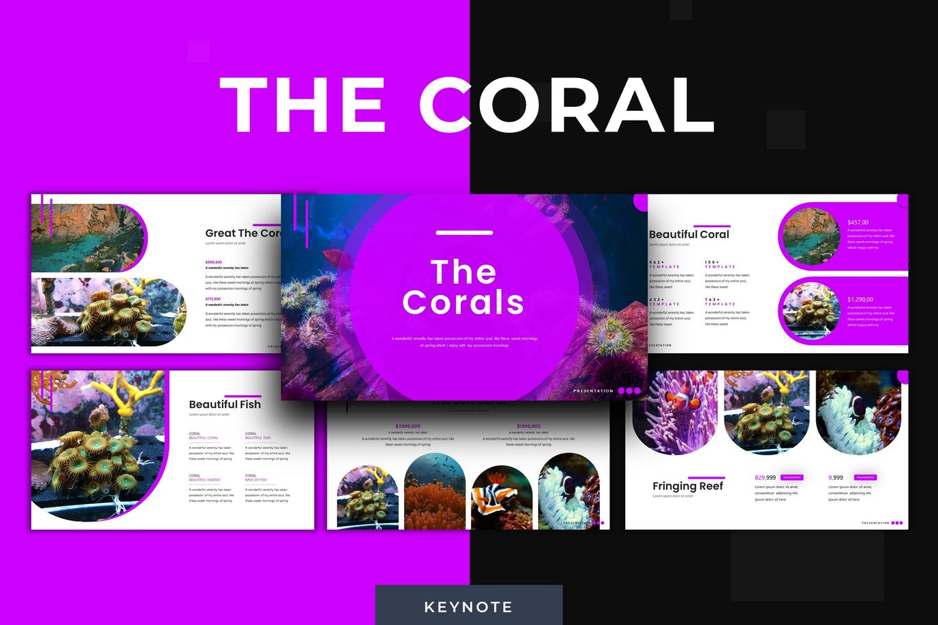 这次老不湿分享的是,时尚高端绚丽珊瑚主题的keynote幻灯片演示模板(key),具有第5种预制的颜色变化立即获取, 珊瑚-主题模板是用于商务或个人需求的多功能演示文稿的绝佳模板。该模板中的所有元素都是使用Keynote制作的,只能使用Keynote进行编辑,插入内容,将图像替换为占位符,更改颜色,以及所有演示文稿(包括动画幻灯片),并将幻灯片展示给业务合作伙伴。快乐滑块!