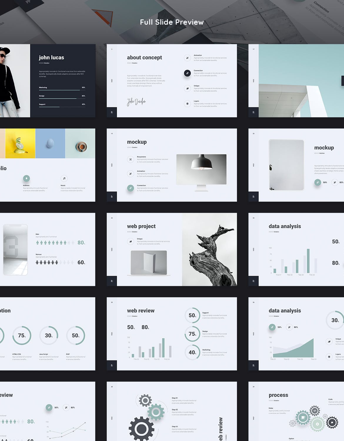 这次老不湿分享的是,高端简约时尚高品质的多用途keynote幻灯片演示模板(key),该模板的主要目的是为用户提供具有创意,现代设计和解决方案的想法。换句话说,模板是一种“产品”,买方可以直接使用它,并且可以在没有模板作者的情况下流畅地表达自己的想法。