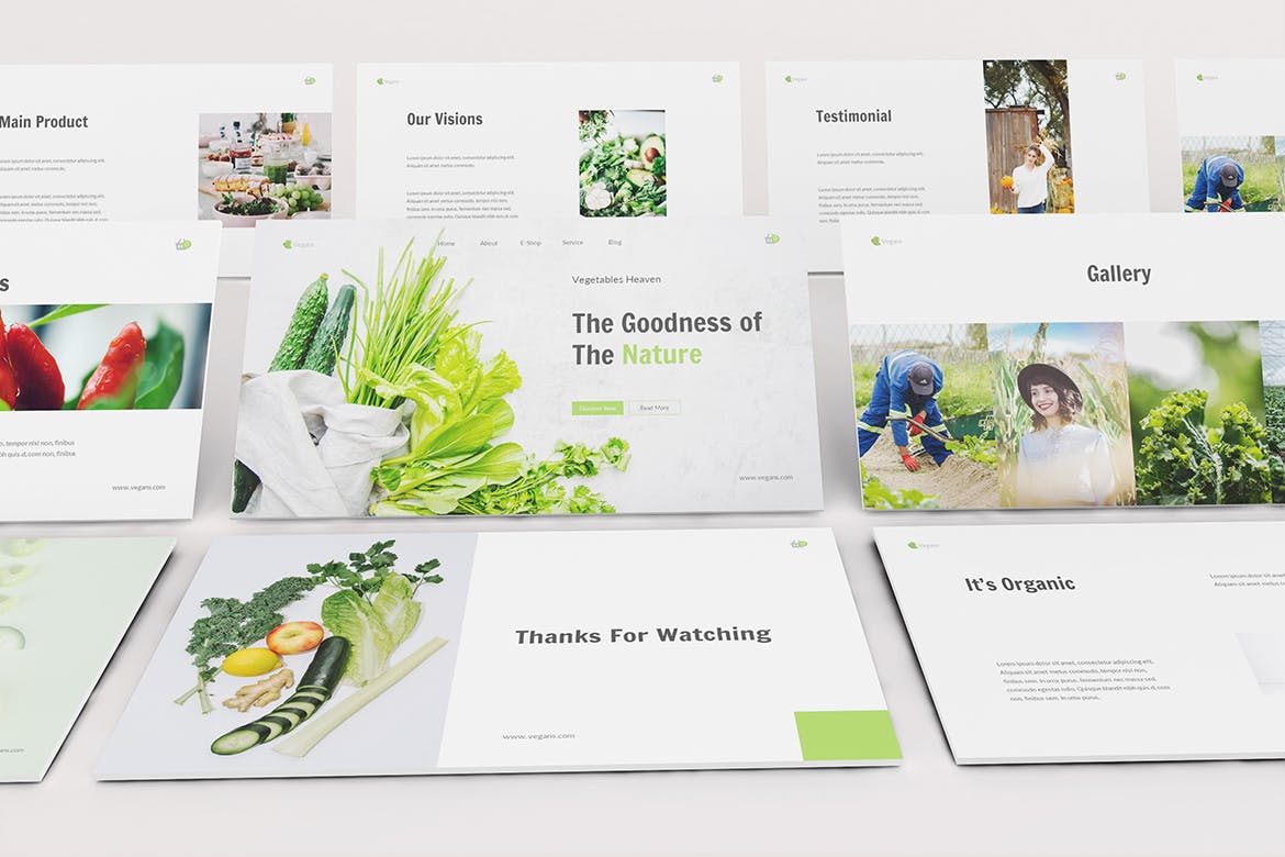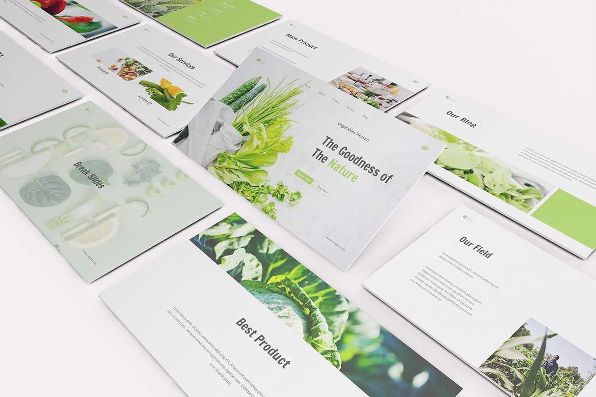 这次老不湿分享的是,清新时尚绿色健康蔬菜水果主题的keynote幻灯片演示模板(key),农民,蔬菜供应商和相关行业演示模板的蔬菜主题模板。平面和简约的设计使您的演示文稿脱颖而出,具有简单,干净和简约的设计理念。用于高质量的品牌展示资产。