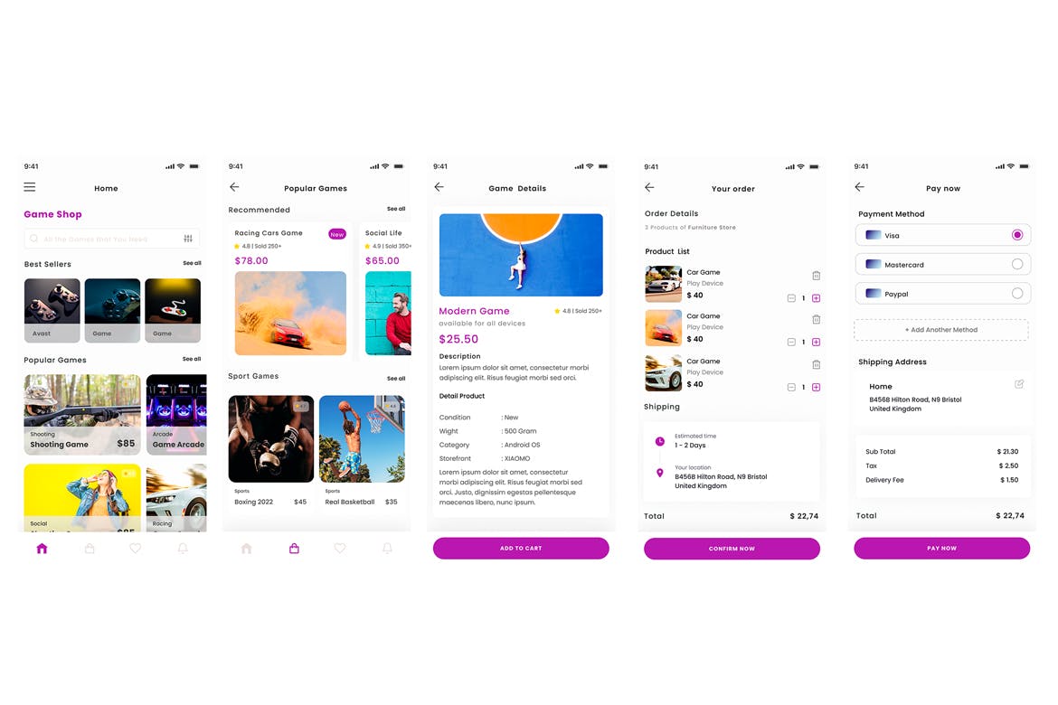 游戏商店、游戏商店、视频游戏电子商务应用APP UI KIT