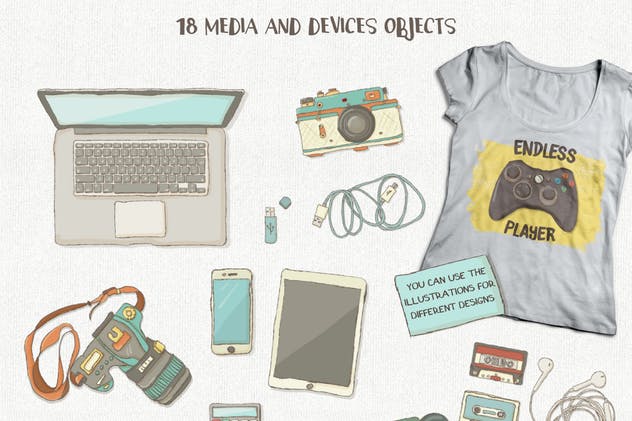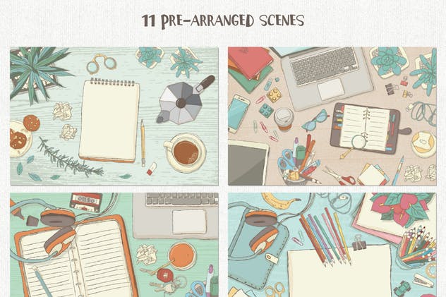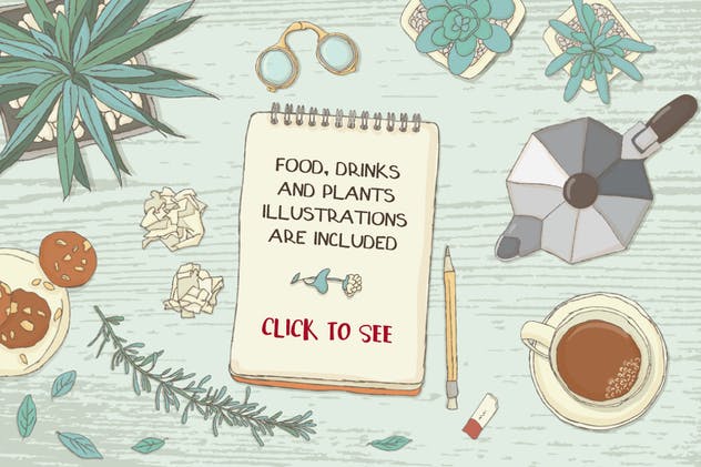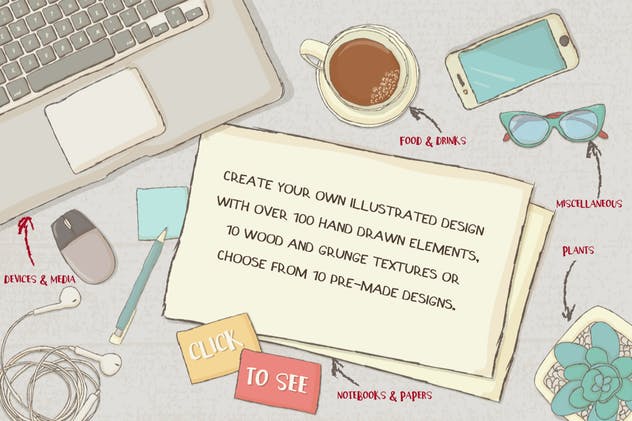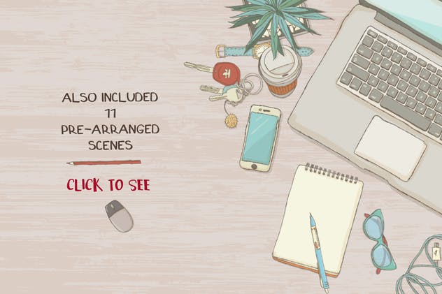 这是一个有插图的手绘场景创建器,您可以很容易地创建自己的设计项目,并且重新着色等。可用于创建网页标题,明信片,t恤设计,海报,传单,移动应用程序或任何其他设计项目,它会给您的项目一个手绘的有机外观。