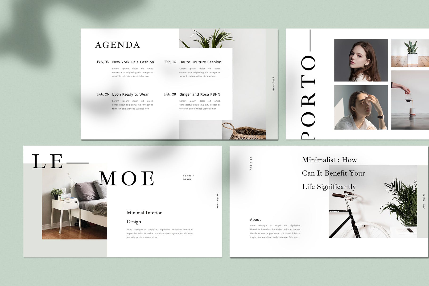 是一个极简风格的演示模板,非常适合用于业务演示,lookbook幻灯片,项目推介等。