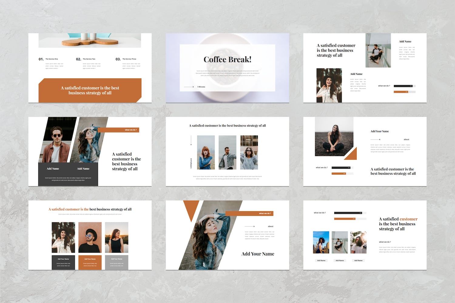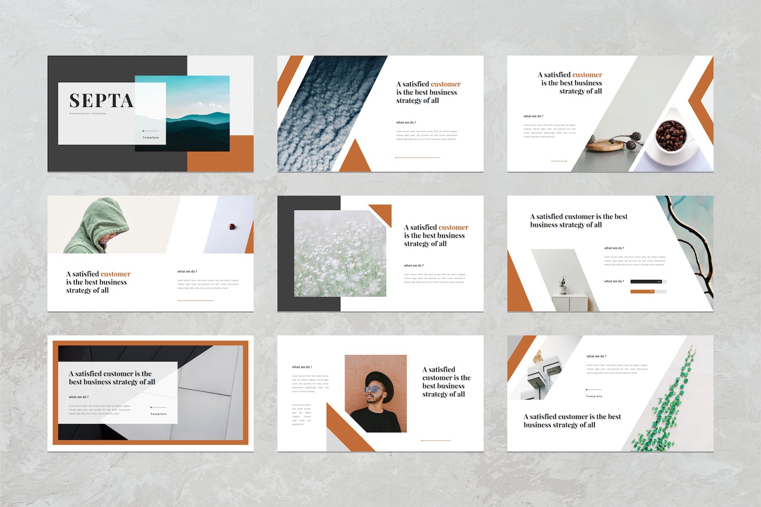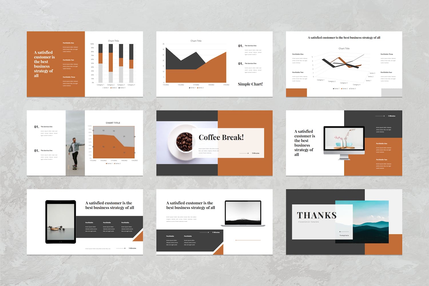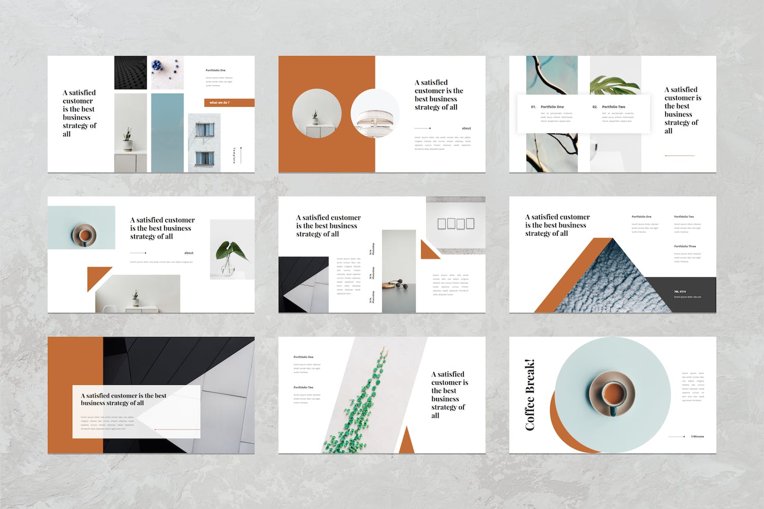 此演示模板包含现代,典雅,创意,专业和独特的布局。