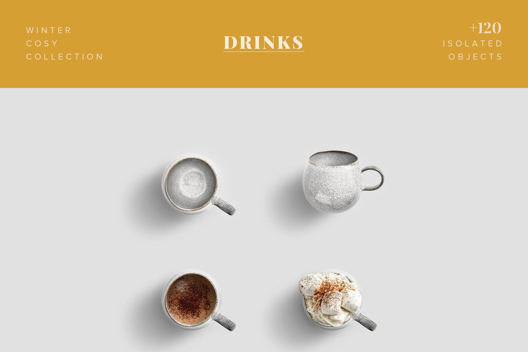 这组舒适的冬季场景模板的针织品和灯是可定制颜色的,陶瓷物品上的内容也是可编辑的,让您可以创建一个属于自己的平面场景,散发着温暖和放松的氛围。
