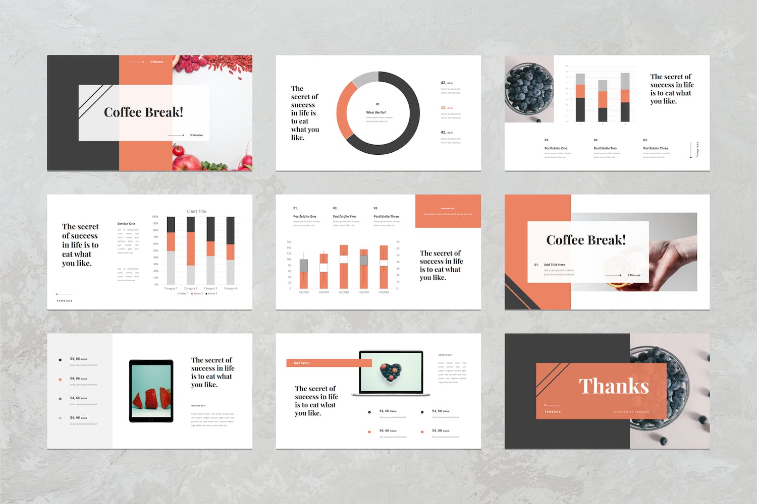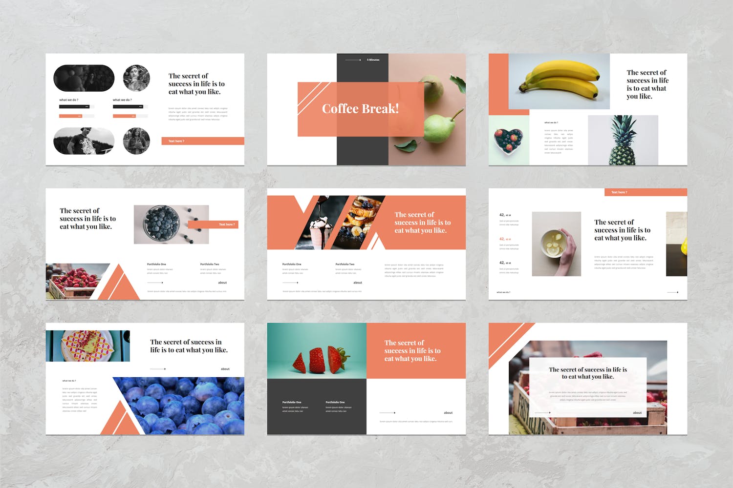 此演示模板包含现代,典雅,创意,专业和独特的布局。