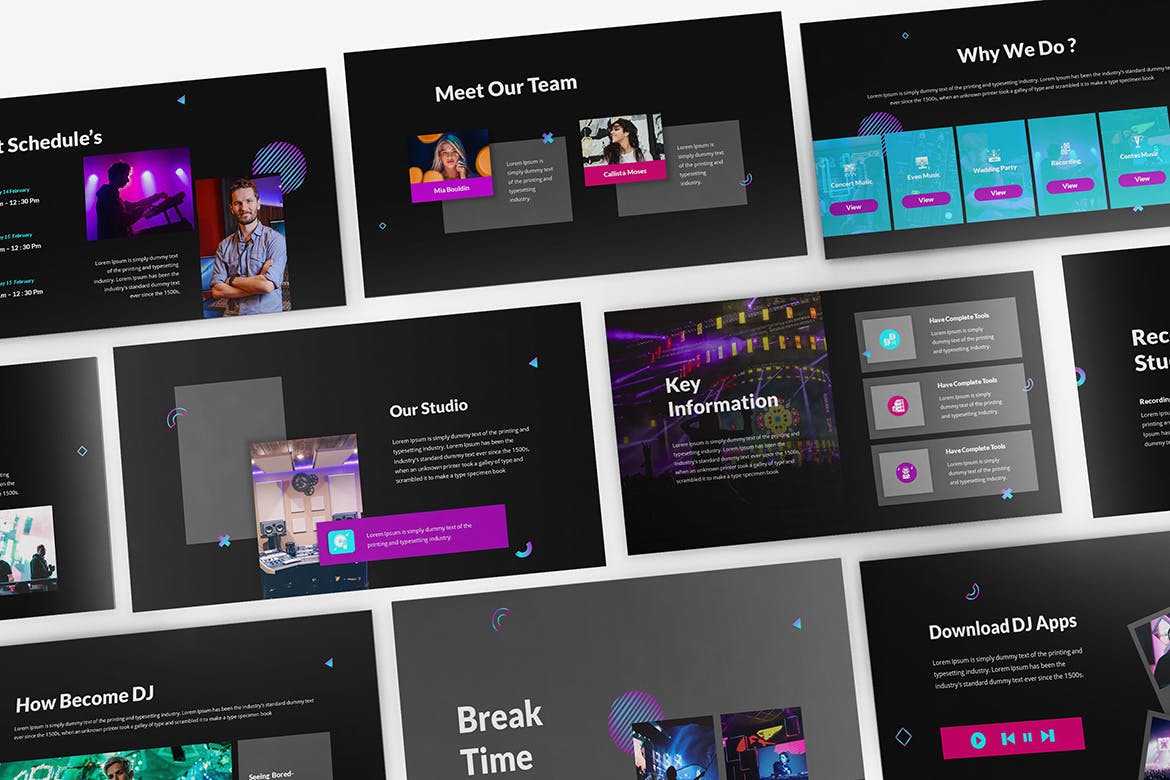 Dj Powerpoint演示模板适用于磁盘骑师和音乐家演示行业建议。使用Glamor dan Energic设计,您的投资者可能会喜欢此演示文稿。它使您的建议脱颖而出。高质量的品牌展示资产。