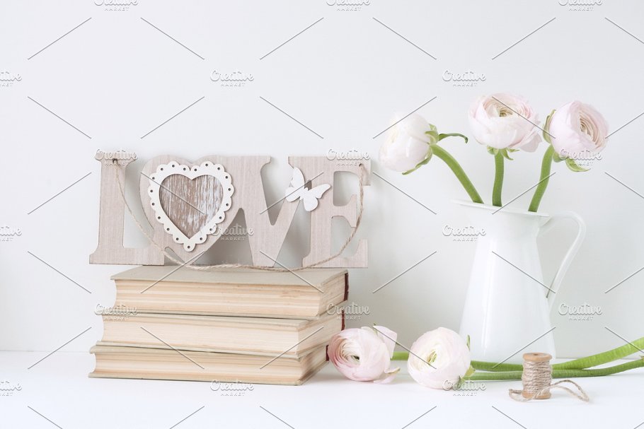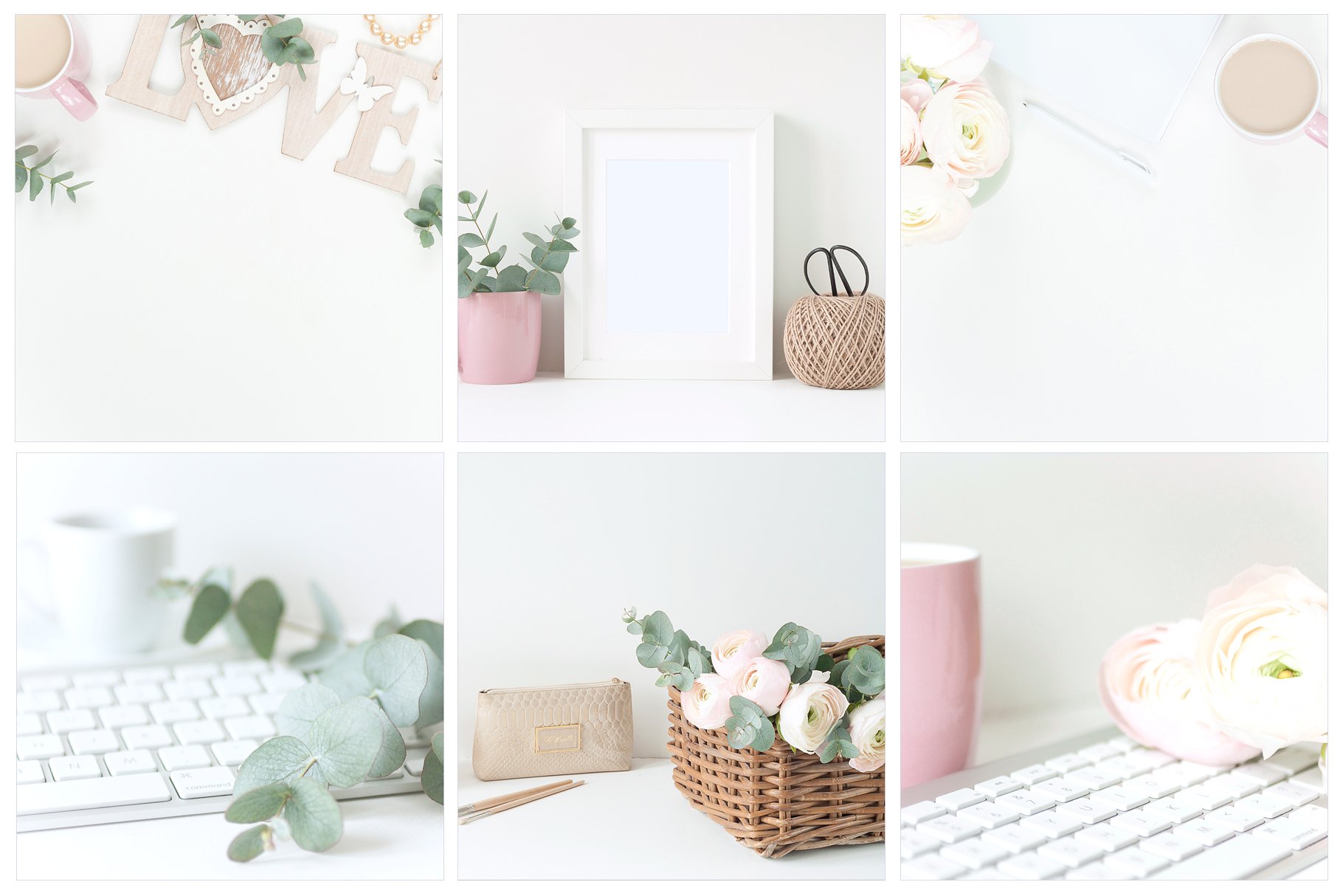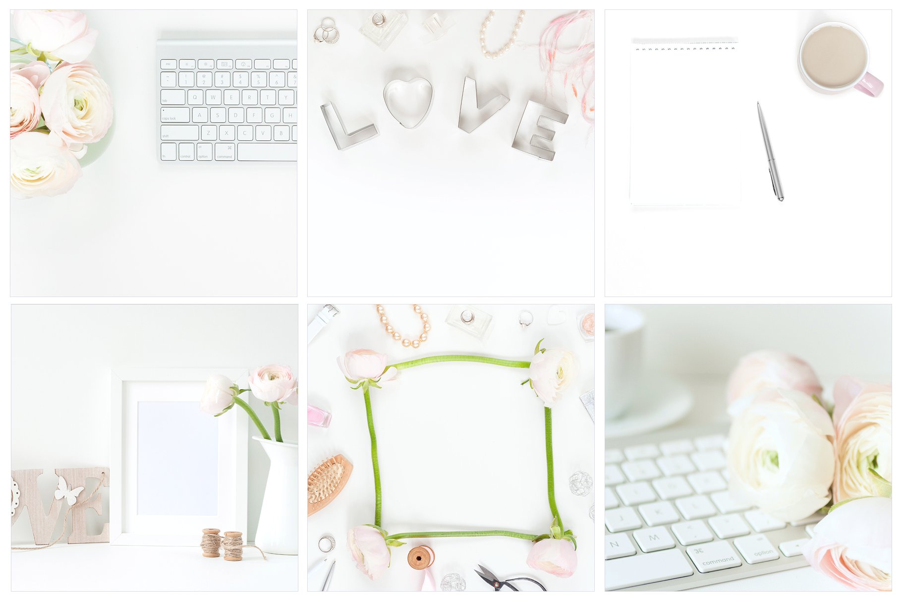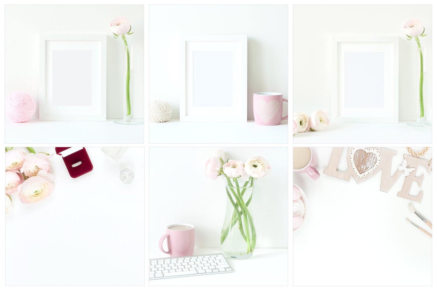 这组粉红毛茛花卉装饰场景样机合集包括了24个高分辨率的JPG文件和6个分层PSD模板,可爱的形象最适合春天,情人节,新生和女性主题的设计项目。