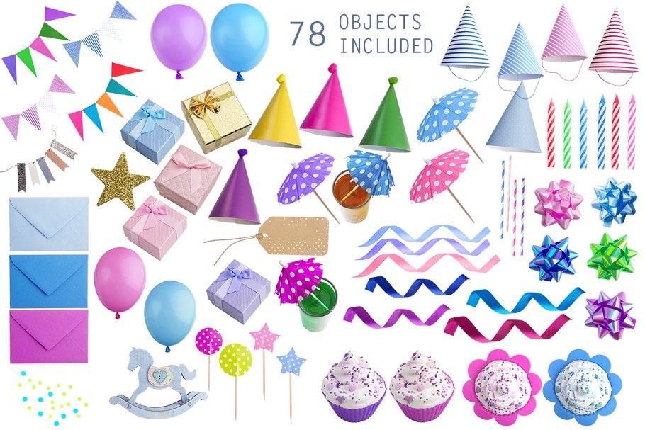 这组模板合集是用于设计聚会,生日场景、博客,邀请函、社交媒体等其他更多项目的理想素材。你将得到19个高质量的背景(300 dpi,4724x7087px),所有的物体都没有阴影,你可以在Photoshop中创建阴影。