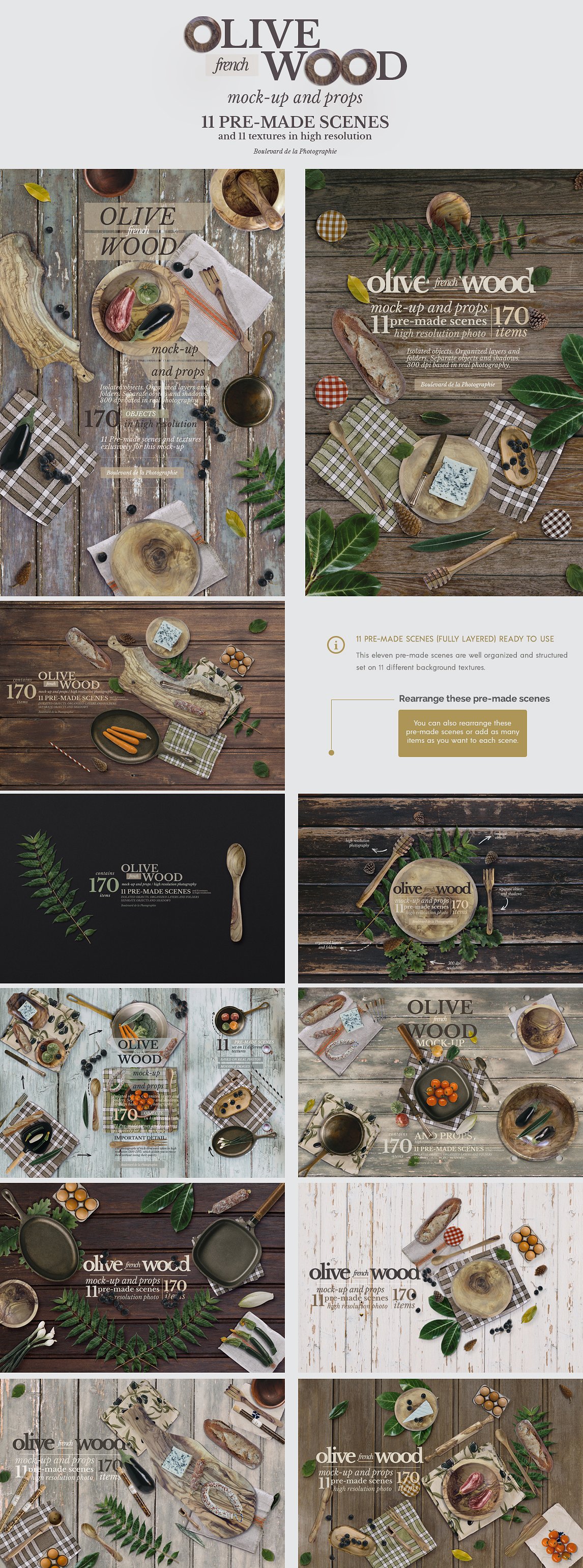 今天为大家分享的是,高端法国橄榄木厨房用品展示模型mockups,170个独立元素,11个预选制作的场景,每个素材都是实物拍摄的,300 DPI,可以在不丢失质量的情况下调整尺寸,可以帮助您创建一个橄榄木厨房的项目,enjoy!