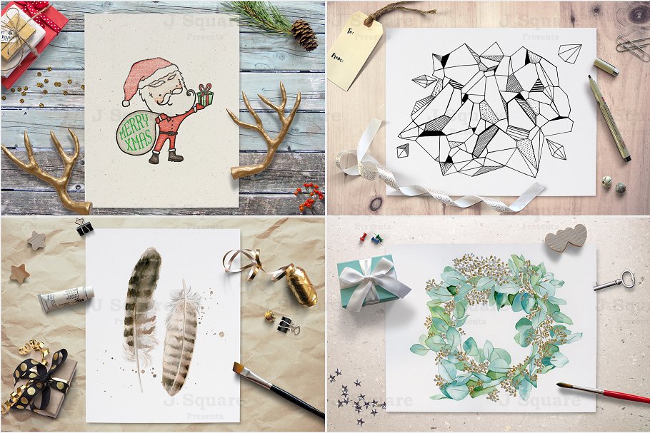 这组合集包括了9个JPG格式预制场景(4幅风景画和5幅肖像布局),9个PNG格式预制场景(4幅风景画和5幅肖像布局),让你即使是数码设计工具的新手,也可以在几秒钟内放置你的设计元素。