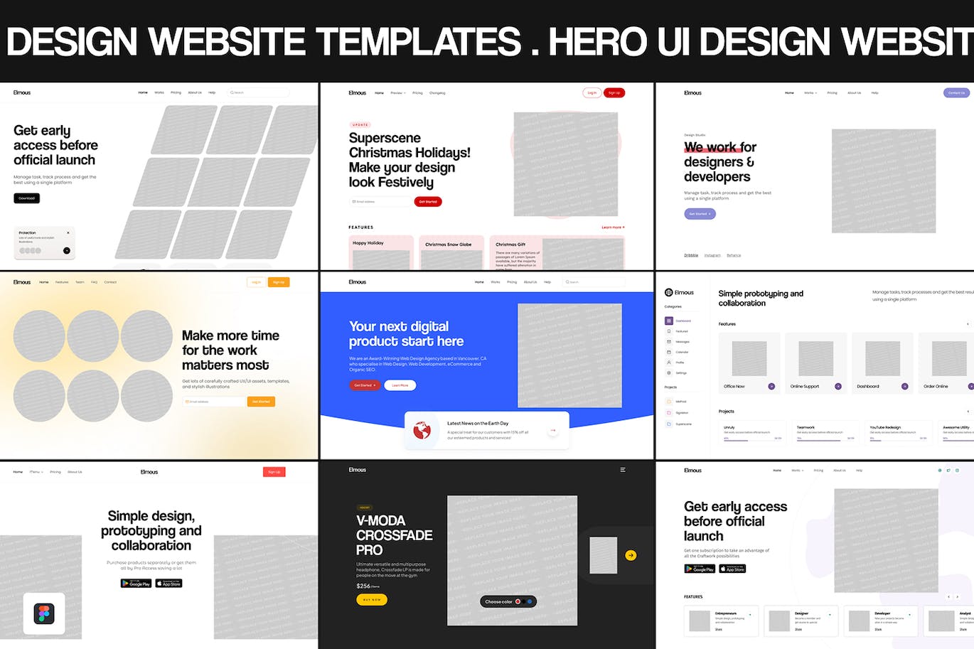 这个英雄标题UI Figma模板具有现代和简约的风格。这个概念很容易编辑、自定义和调整大小,因为矢量形状和组织良好的层。