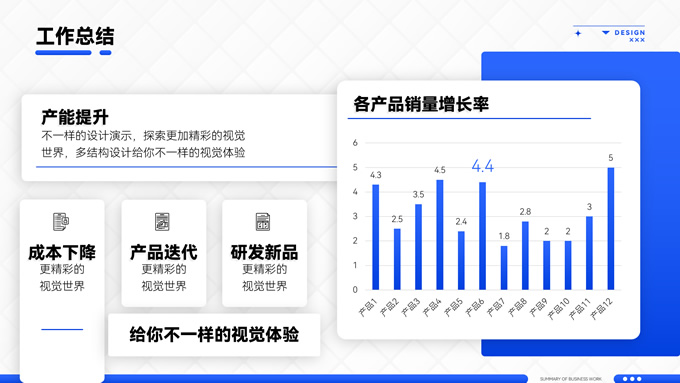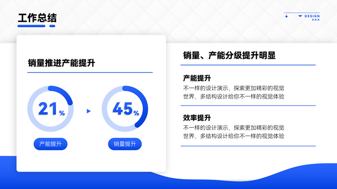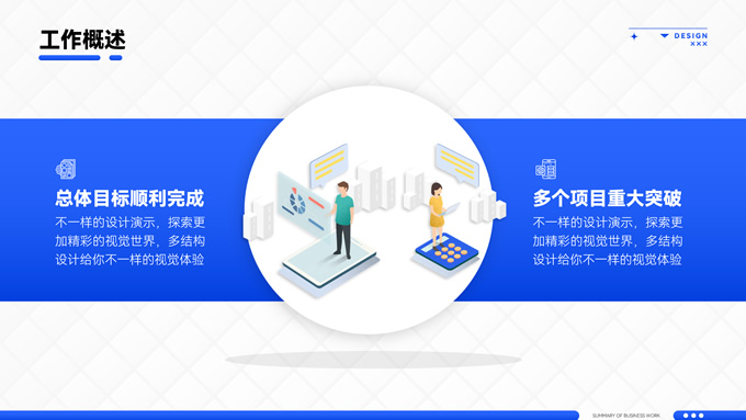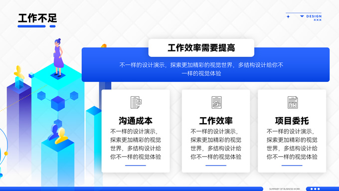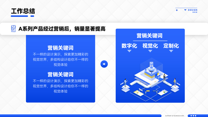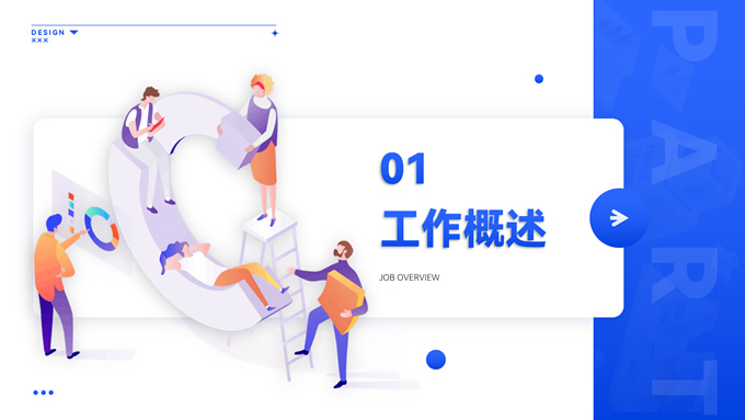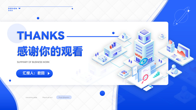 简介:海蓝渐变商务风工作总结通用ppt模板,本模板共16P,应用经典商务蓝色,涵盖封面、目录、过渡、图文、图表页等多种版式,多结构复合型设计结合2.5D素材塑造整体风格,内页丰富且有设计感,容器塑造阴影立体感丰富,全套模板可进行一键换色,方便用户根据应用场景适配不同色彩,应用场景广泛,P界达人 君回 作品。