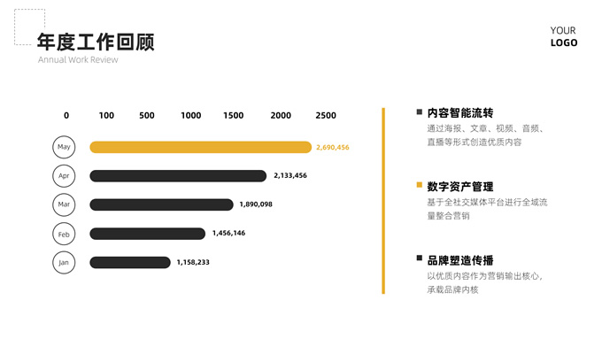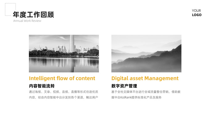 简介:黄灰商务风高端时尚年度工作计划ppt模板,本模板共20P,目录:年度工作回顾、工作成果展示、存在主要问题、明年工作计划,深灰背景,简约时尚几何元素极简封面、过渡页,黄灰配色,简约商务风高端版式内容页,适合年度工作计划、工作汇报等场景应用的高端时尚商务通用ppt模板。