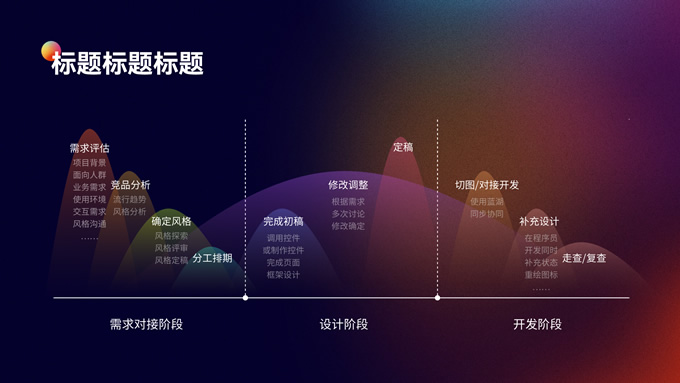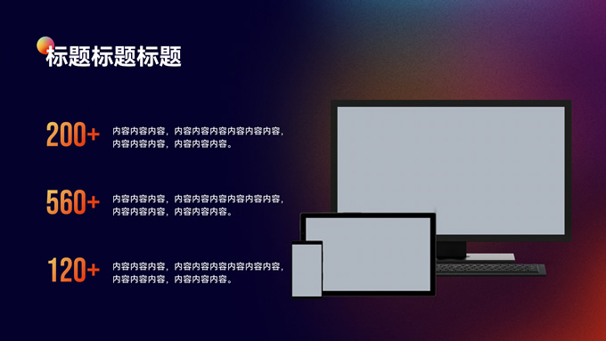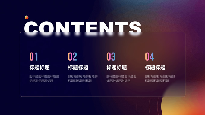 简介:蓝橙色毛玻璃弥散风年终总结ppt模板,本模板共12P,四个章节,采用毛玻璃设计元素,三原色弥散效果,适合工作汇报、产品介绍等应用场景,P界达人 山海 作品。