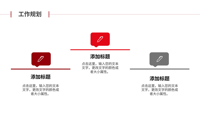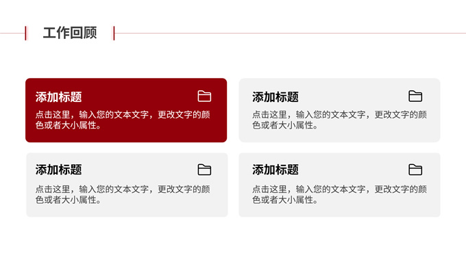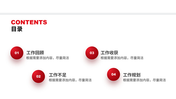 简介:红黑色系年终述职报告商务通用ppt模板,本模板共10P,涵盖了封面页、目录页、内容页等,红黑的搭配有点野性的美感,比较特别,内容页相对简单,视觉冲击没有特别大,与封面、过渡页形成了鲜明的对比,让每次的转场都有显明的关注度,适用于各类汇报、职场工作总结等场景,希望模板中的配色与版式能带给您一些灵感,P界达人 晶澄 出品。