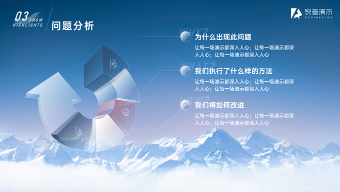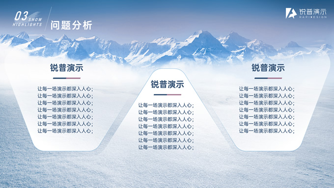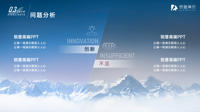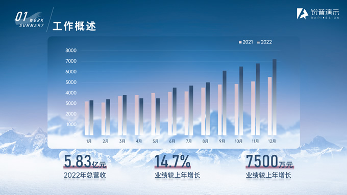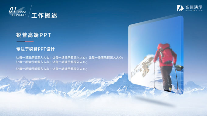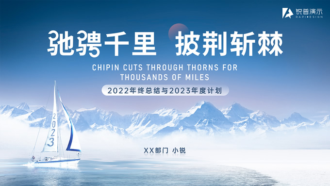 简介:驰骋千里 披荆斩棘——年终总结与年度计划ppt模板,本模板共21P,目录:工作概述、亮点展示、问题分析、未来规划,雪山、帆船创意标题字封面、目录页、过渡页,经典蓝配色,简约大气商务范版式内容页,适合年终总结、工作汇报、新年计划等场景应用的商务汇报通用ppt模板,锐普出品。