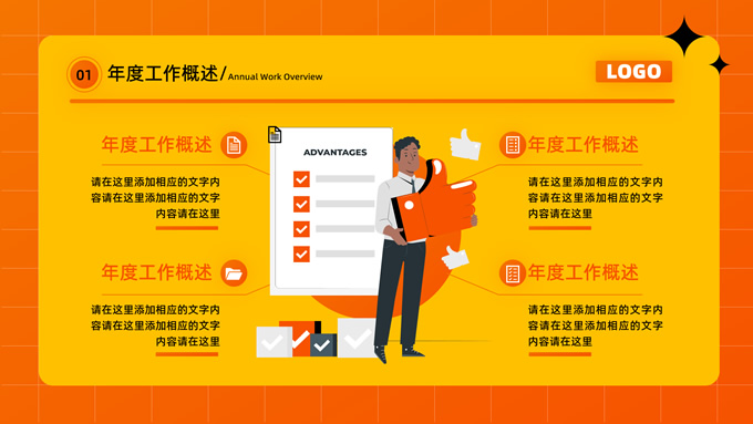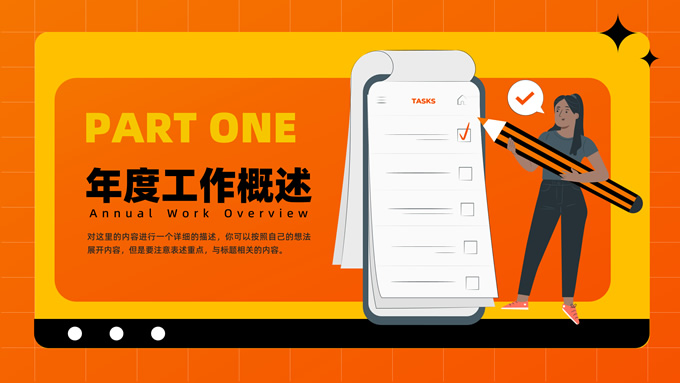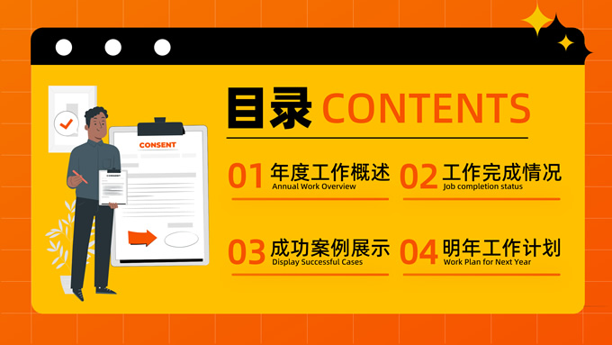 简介:橙色插画风年终述职报告ppt模板,本模板共11P,这份模板主要用于做年终总结或者季度、工作总结等,包含多种行业,以及岗位,模板设计来源花瓣网,整体风格为橙色插画风,比较适合现代年轻人,图片和字体均可商用,欢迎下载,P界达人 追逐 作品。