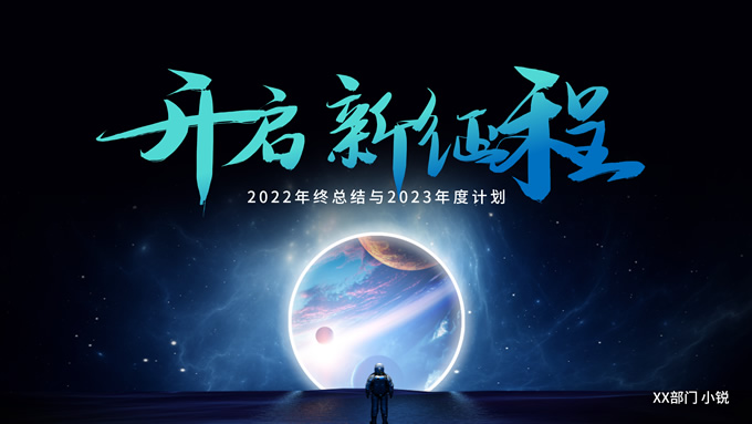 简介:开启新征程——高端大气科技风年终总结ppt模板,本模板共22P,目录:工作概述、亮点展示、问题分析、未来规划,星球、星空、宇航员主图毛笔字体创意封面、目录页、过渡页,科技蓝配色,高端大气科技风版式内容页,适合年终总结、年度汇报、新年计划等场景应用的科技风商务通用ppt模板。