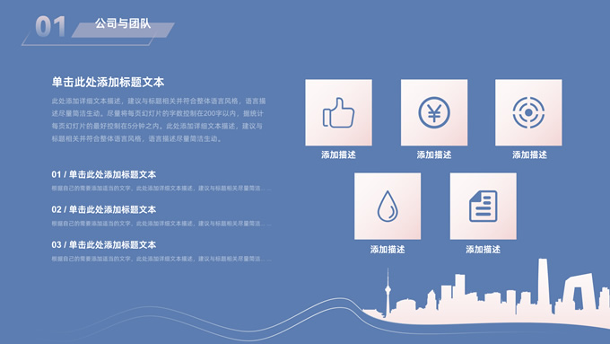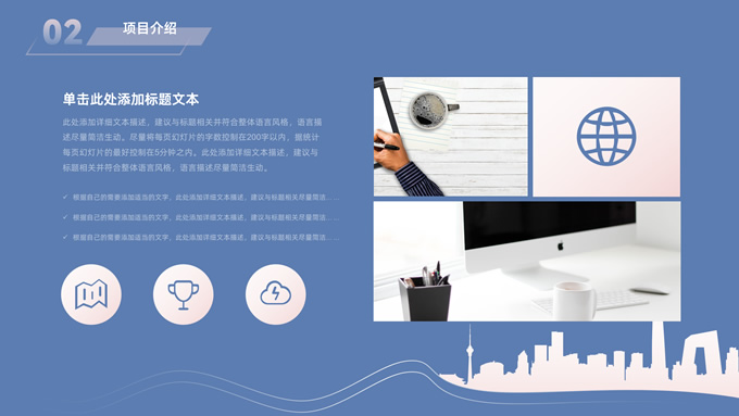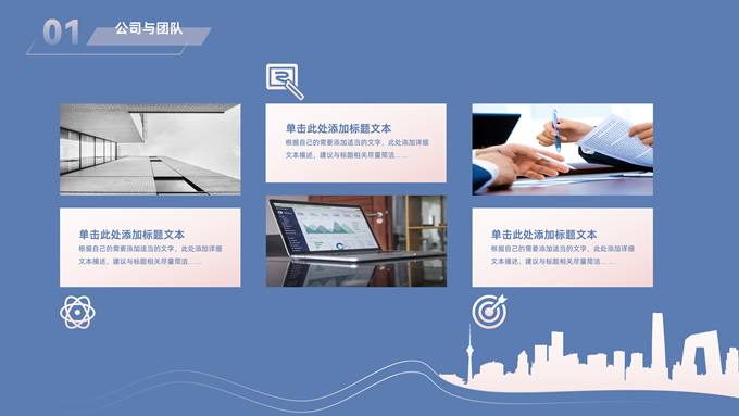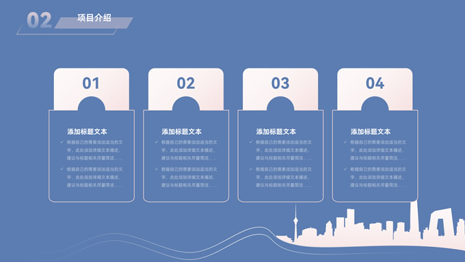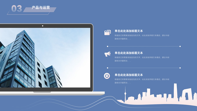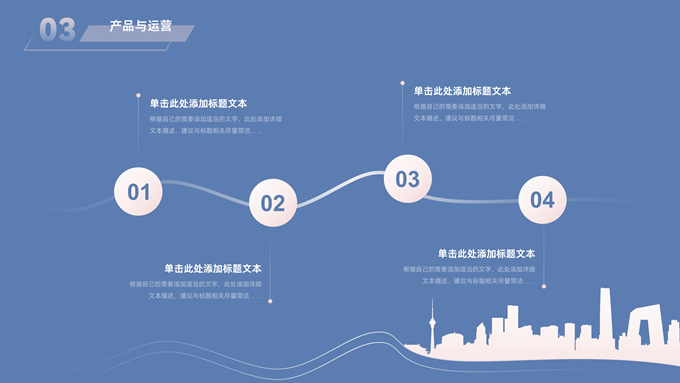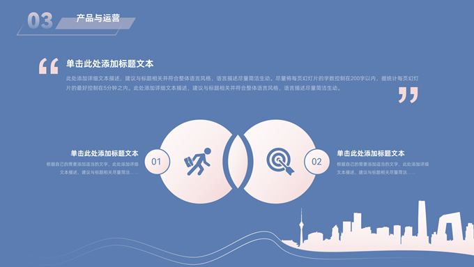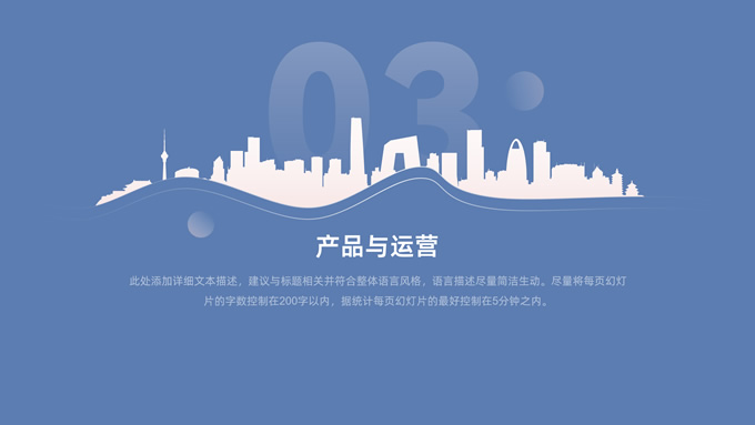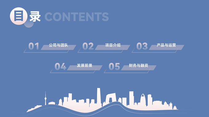 简介:简约商务策划方案计划书ppt模板,本模板共28P,目录:公司与团队、项目介绍、产品与运营、发展前景、财务与融资,经典蓝背景,城市剪影线条艺术创意极简约封面、目录页、过渡页,扁平化图表,简约商务版式内容页,适合公司介绍、项目介绍、计划书、策划方案等场景应用的商务通用ppt模板。