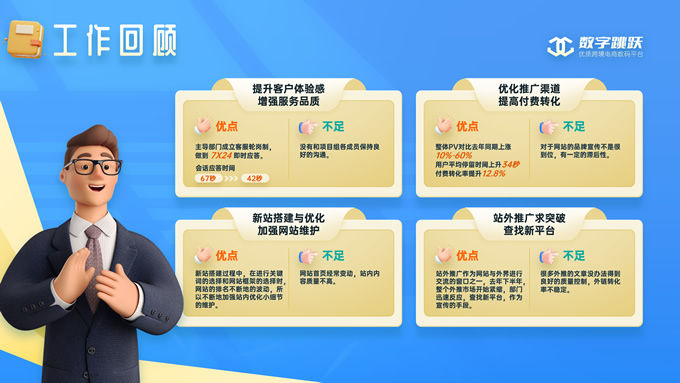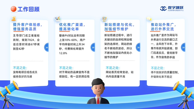 简介:3D插画风年终述职报告ppt模板,本模板共8P,商务办公场景3D插画流体几何风创意封面,蓝黄配色,精美大气实用商务版式内容页,PPT竞技场年终述职篇小组优秀作品。