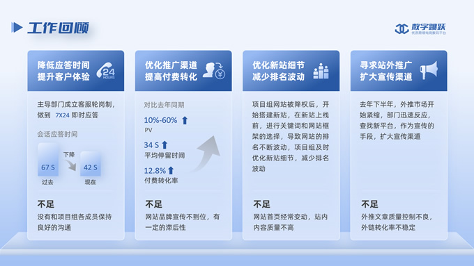 简介:经典蓝商务风年终述职报告ppt模板,本模板共8P,展示台数码产品主图简约标题文字创意封面,经典蓝配色,精美商务版式内容页,PPT竞技场年终述职篇小组优秀作品。