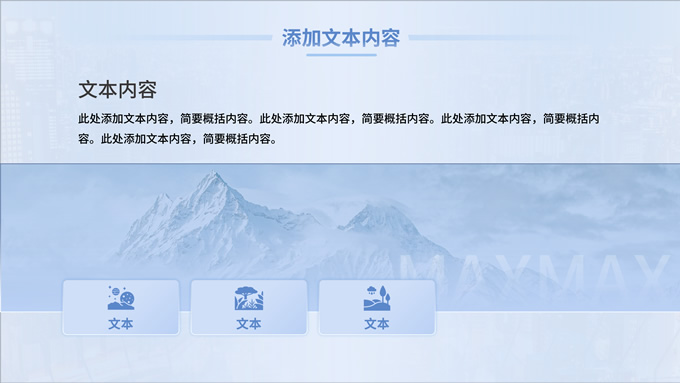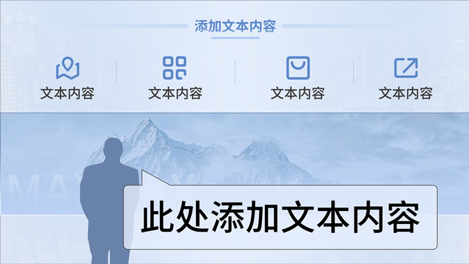 简介:淡雅蓝清新风商务汇报通用ppt模板,本模板共21P,雪山大图背景,弧形几何风标题文字简约封面,淡雅渐变蓝配色,阴影风格图表,可以应用于多种商务场景内容版式,适合工作总结、工作汇报等场景应用的总结汇报商务通用ppt模板。