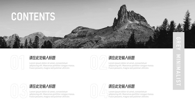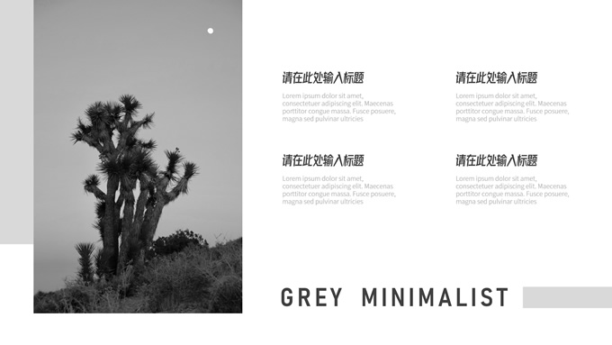 简介:灰色调极简风工作汇报商务通用ppt模板,本模板共10P,包含了封面、封底、目录、过渡页、内页这几种常见页面,整体配色干净整洁,风格偏向欧美杂志,排版工整,适用于产品展示,工作汇报,毕业答辩等多种场合,模板中使用图片均为免费课商用,P界达人 听风 作品。