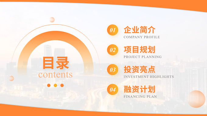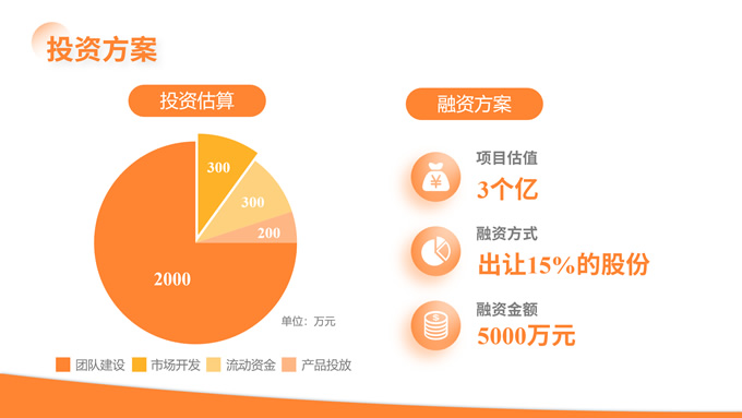 简介:橙色活力极简商业计划书ppt模板,本模板共17P,目录:企业简介、项目规划、投资亮点、融资计划、团队介绍,极简标题文字封面、目录页、过渡页,橙色活力配色,扁平化图表,极简活力风商务版式内容页,适用于创业投资、商业融资、企业宣传、项目展示、项目推广等场景应用的商务通用ppt模板,P界达人 蓝天白云 作品。