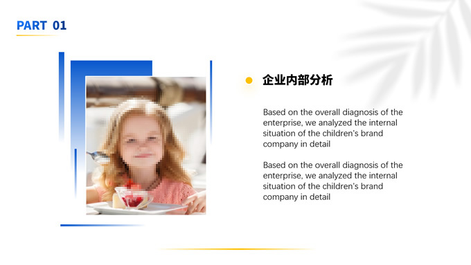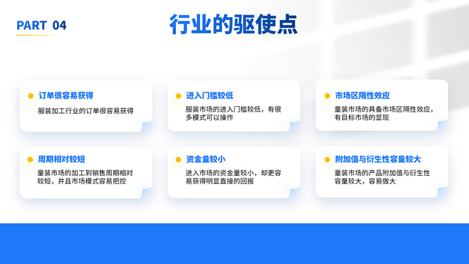 简介:蓝色商务风企业策划报告ppt模板,这份模板共12P,板式丰富涵盖了目录,过渡,内容,封面封底等,文案是儿童企业策划所以通篇偏商务主蓝色加上橙色点缀,正式不失活泼,素材主要是几何图行,简洁易操作,后期可运用于各种企业策划,企业介绍等,P界达人 宋晨乐 作品。