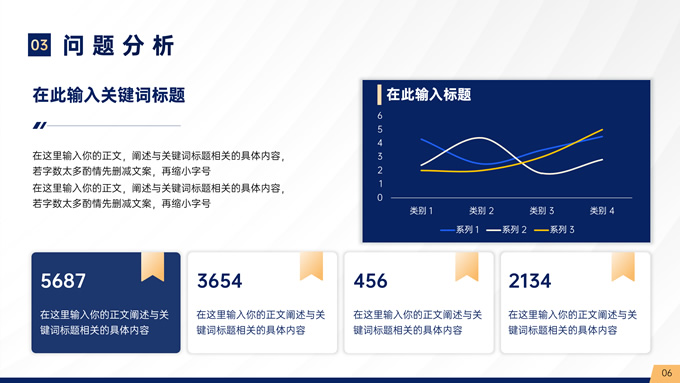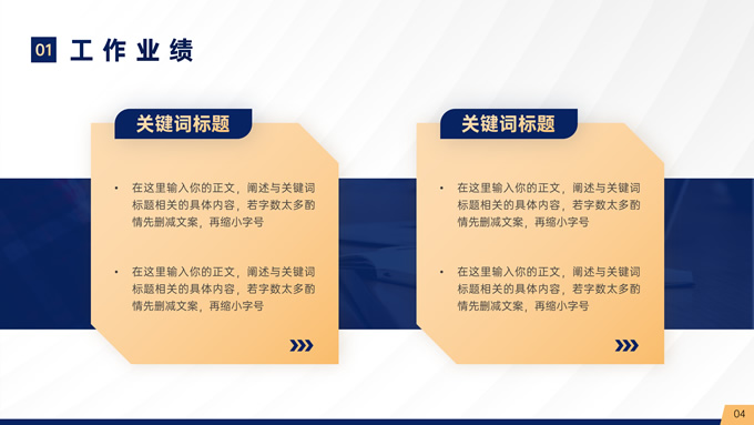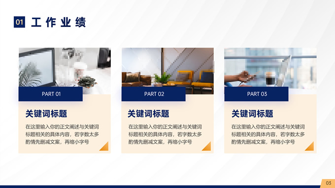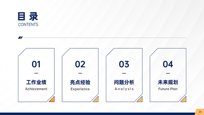 简介:蓝金商务风工作汇报商务通用ppt模板,本模板共11P,涵盖了封面页、目录页、图文页、图表页,逻辑图等,运用线条、色块和不规则图形设计排版,采用深蓝色和金色的搭配,简约大气,适合个人工作总结、季度工作汇报场景应用的ppt模板,P界达人 Seastar 作品。
