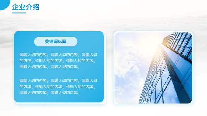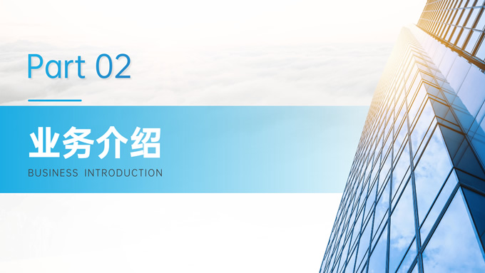 简介:蓝色简约商务风企业介绍ppt模板,本模板共17页,包括仰视视角现代商务大楼的封面页,目录页,过渡页,内容页,结尾页,整体以蓝色简约大气商务风格为主,版面简洁,重点内容突出,主要场景用于企业介绍、企业咨询、品牌介绍,企业培训等应用场景的通用商务ppt模板,P界达人 adieu 作品。