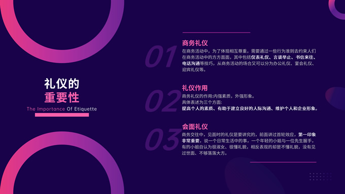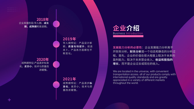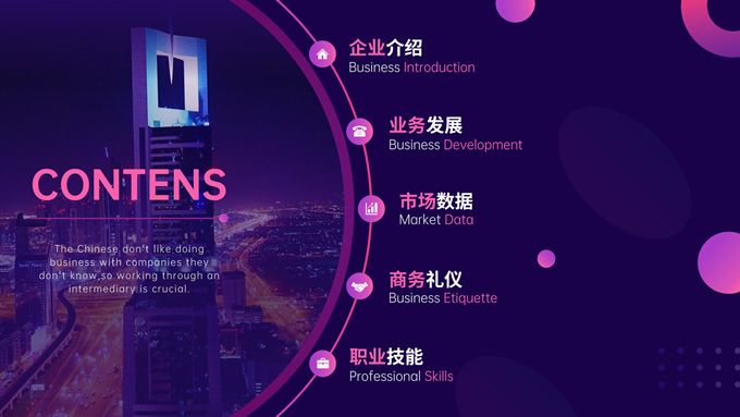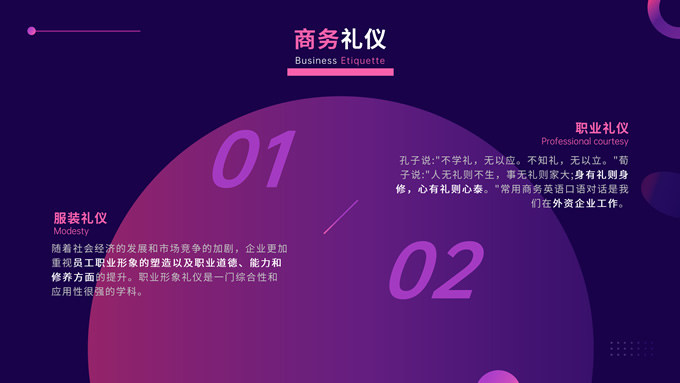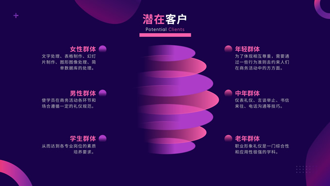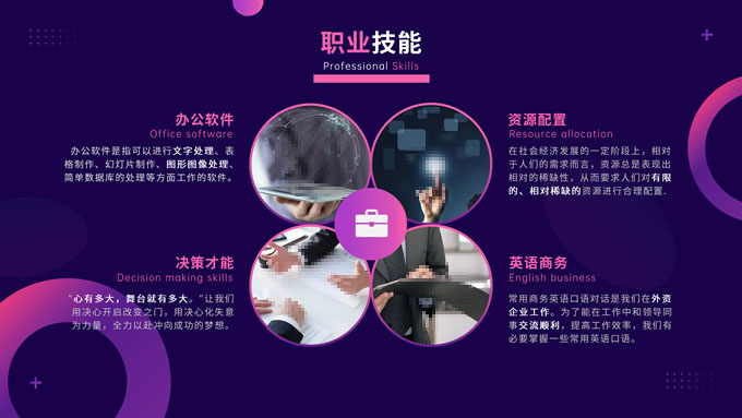 简介:渐变紫色几何风职场技能培训ppt模板,本套模板共10P,汇报内容包括:企业简介、业务发展、市场数据、职业技能等部分,涵盖了几种板式,封面页、目录页、内容页等,适合职场培训、工作总结、工作汇报等场景应用的商务演示通用ppt模板,P界达人 蔡爱茵 作品。