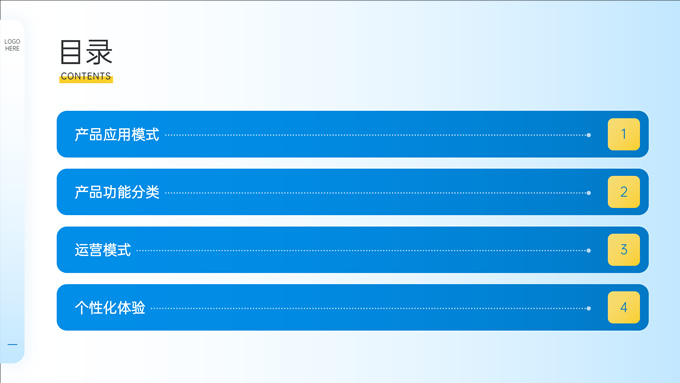 简介:简约清新几何蓝黄时尚项目介绍ppt模板,本模板共12P,目录:产品应用模式、产品功能分类、运营模式,个性化体验,几何元素、弥散光背景创意设计,适用于项目介绍、项目汇报等场景应用的简约时尚ppt模板,P界达人Zeeky 作品。