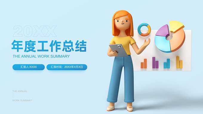简介:职场女性3D插画简约清新工作总结ppt模板,本模板共23P,本模板适用于工作总结汇报,主要分四个部分,整体比较清爽,配图轻快、活泼,适合职场女性使用,P界达人 每文 作品。